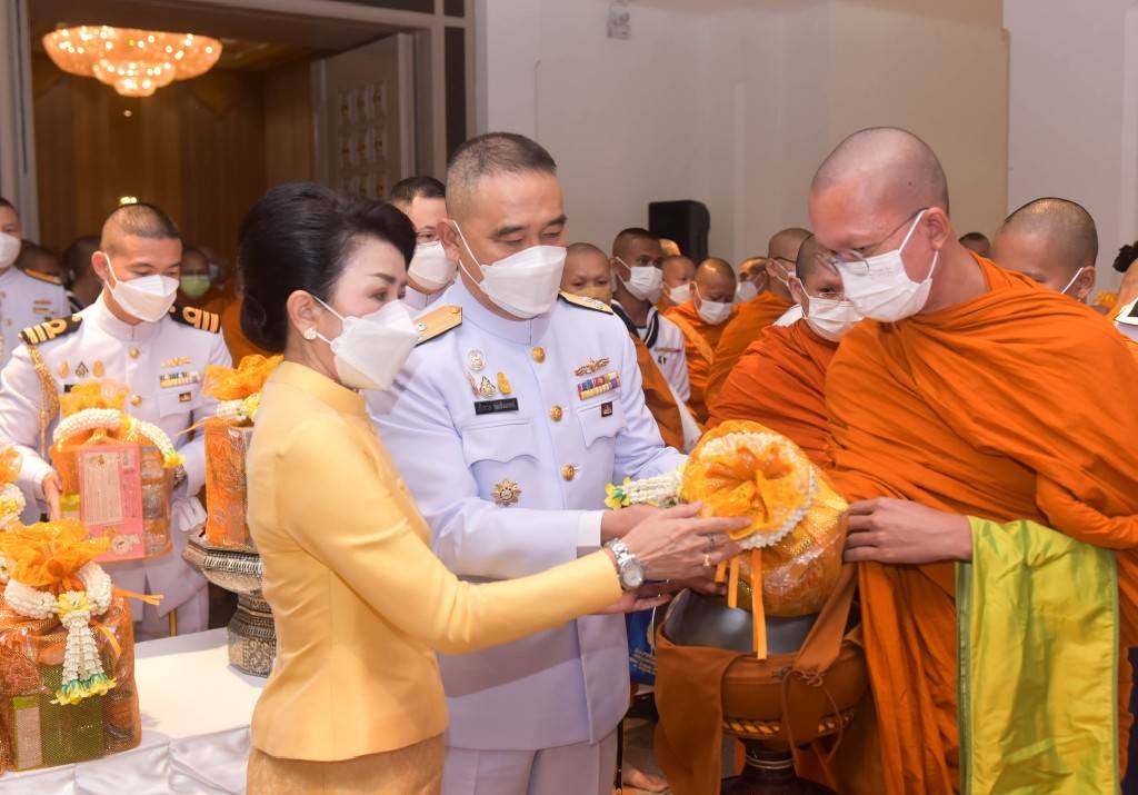 โดยในช่วงเช้า พล.ร.อ.เชิงชาย ชมเชิงแพทย์ ผู้บัญชาการทหารเรือ เป็นประธานในพิธีทำบุญตักบาตรพระภิกษุและสามเณร โดยนิมนต์พระสงฆ์จาก วัดโมลีโลกยารามราชวรวิหาร จำนวน 45 รูป วัดอรุณราชวราราม ราชวรมหาวิหาร จำนวน 20 รูป และวัดชิโนรสารามวรวิหาร จำนวน 24 รูป รวมทั้งสิ้น จำนวน 89 รูป ณ ลานทัศนาภิรมย์ หอประชุมกองทัพเรือ โดยมี นางจตุพร ชมเชิงแพทย์ นายกสมาคมภริยาทหารเรือ และคณะนายทหารชั้นผู้ใหญ่ของกองทัพเรือพร้อมภริยา เข้าร่วมพิธี