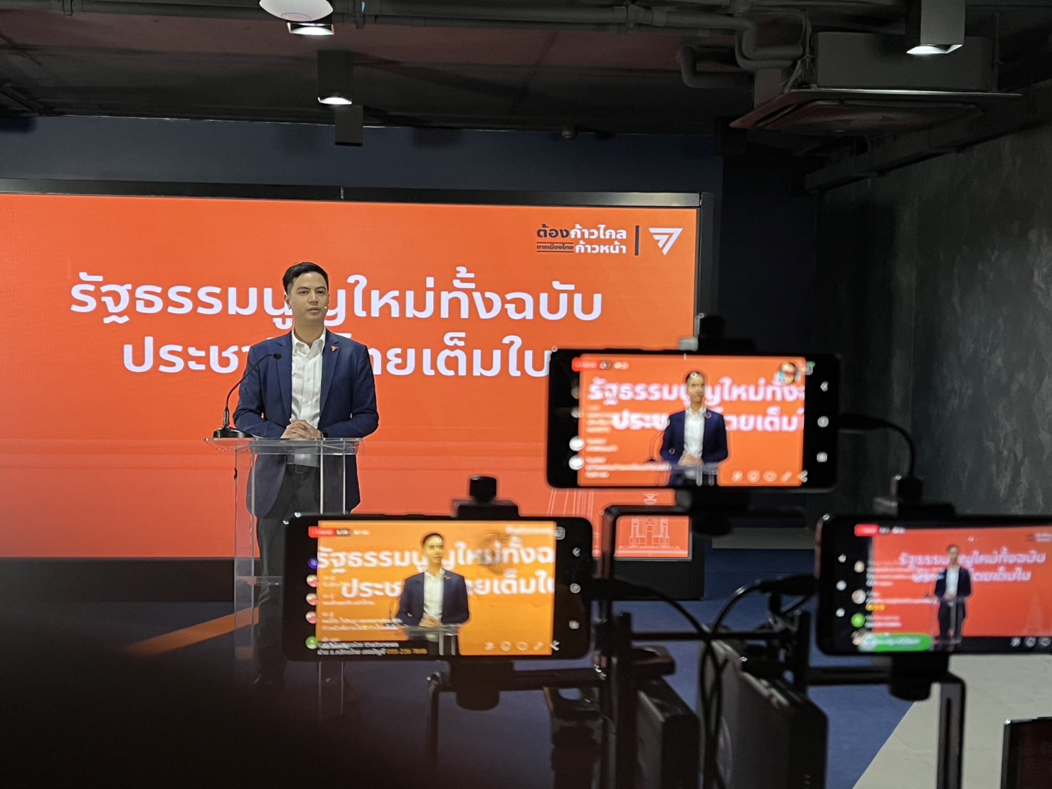 ด้าน ไอติม พริษฐ์ วัชรสินธุ ผู้จัดการฝ่ายสื่อสารและรณรงค์นโยบายของพรรคก้าวไกล ปิดท้ายการแถลงนโยบายการเมืองไทยก้าวหน้า ด้วยการสถาปนารัฐธรรมนูญใหม่ฉบับประชาชน ที่มีเนื้อหาสำคัญคือการปิดช่องรัฐประหาร ปิดช่องการให้คณะรัฐประหารนิรโทษกรรมตัวเอง ปลดอาวุธระบอบประยุทธ์ที่ถูกฝังไว้ในรัฐธรรมนูญ 2560 คือ ส.ว. แต่งตั้ง องค์กรอิสระ และยุทธศาสตร์ชาติ 20 ปี