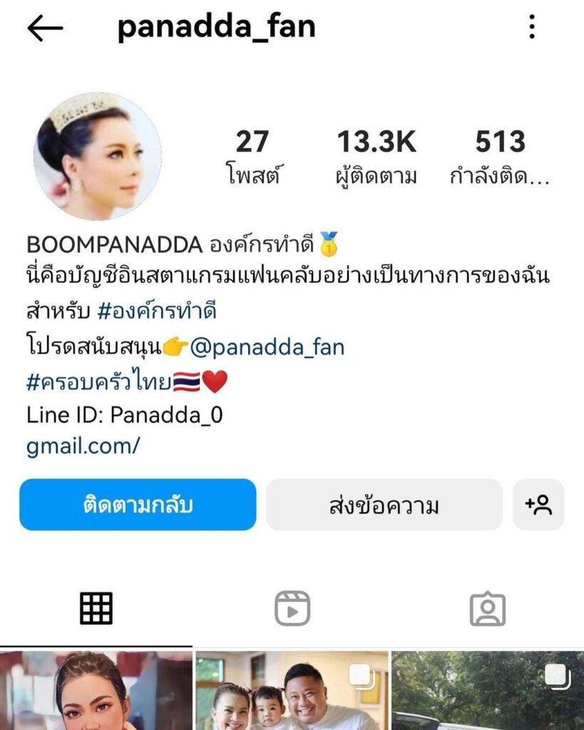“ประกาศ ไอจี panadda_fan เป็นไอจีปลอมที่คนต่างชาติทำขึ้นมา และก็อบทุกรูปทุกโพสลงไอจี จนมีคนเข้าใจผิดมากมาย กรุณาหยุดติดตามและรายงานด้วยค่ะ”