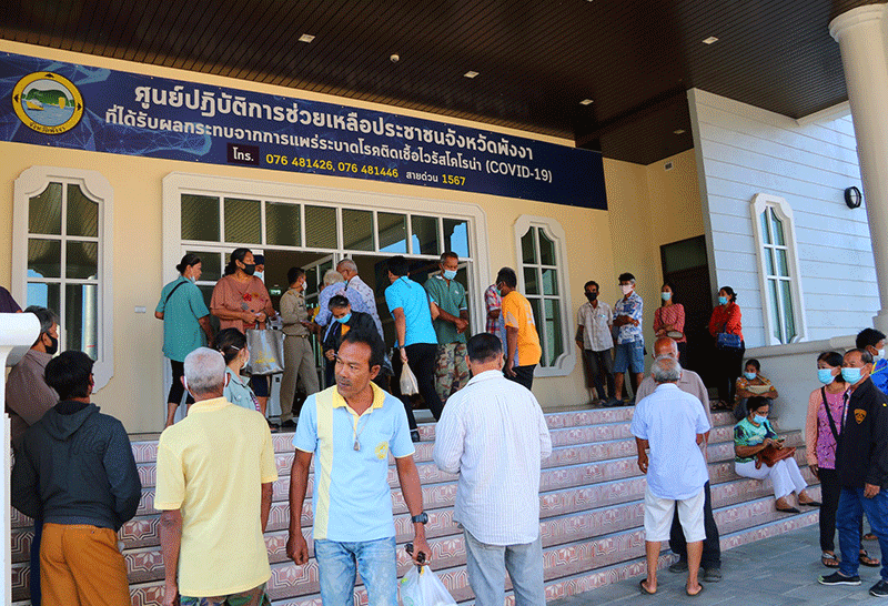 ชาวบ้านแห่ลงทะเบียนเราชนะกลุ่มไม่มีสมาร์ทโฟนที่ศาลากลางจังหวัดพังงา พบคิวแรกมารอตั้งแต่ตี 4