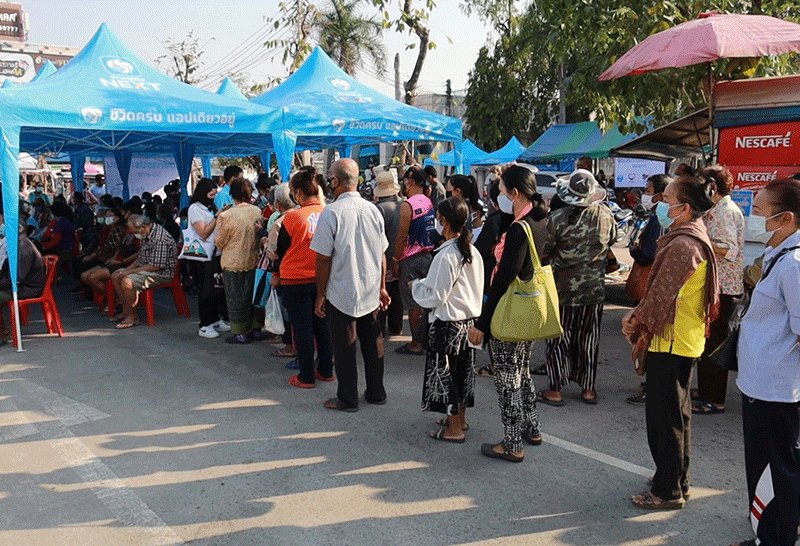 ผู้สูงอายุชาวพิมาย แห่เดินทางไปเข้าคิวลงทะเบียนเราชนะสำหรับผู้ไม่มีโทรศัพท์สมาร์ทโฟนแน่นธนาคารกรุงไทย