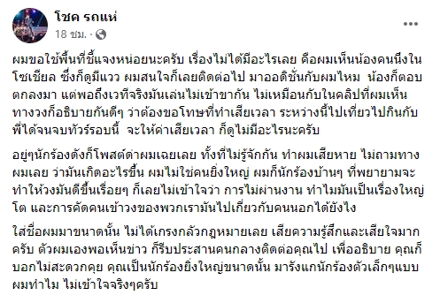 ล่าสุด โชค รถแห่ ก็ออกมาโพสต์ชี้แจงเรื่องที่เกิดขึ้นมาว่า