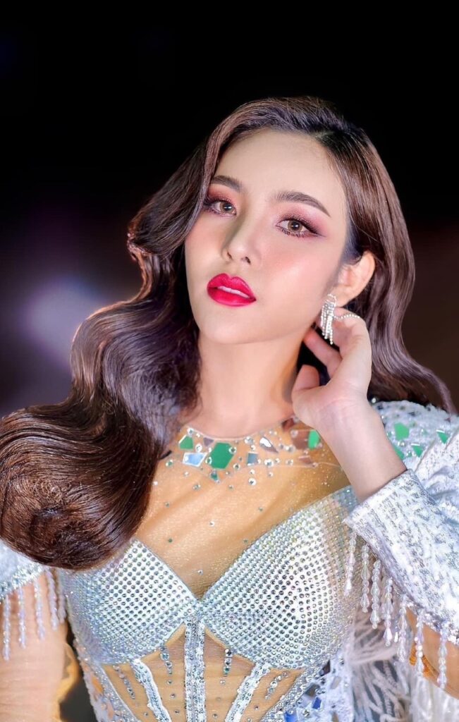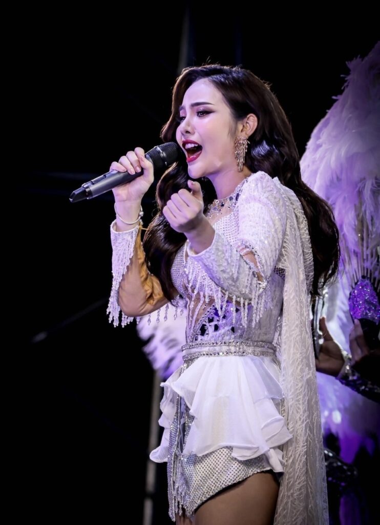 ก่อนหน้านี้ประกวดเพลงลูกทุ่งแท้มาตลอดเลยค่ะ ไม่เคยร้องหมอลำไม่มีพื้นฐานเลย คิดอยู่นานค่ะ พอได้มาร้องก็ยากนะคิดว่าเราทำไม่ได้หรอก เพราะร้องเป็นลูกทุ่งแท้มันจะไม่เหมือนกันเลยค่ะ ไปวันแรกคือเหนื่อยมากถอดใจเลย แต่พออยู่มาเรื่อย ๆ ก็ปรับตัวได้ มีแม่ๆเพื่อนๆในวงคอยซัพพอร์ท โดยเฉพาะผู้บริหาร เฮียหน่อย บอสโน๊ต และพี่ข้าวโอ๊ตค่ะ ร้องไปสักพักก็รู้สึกว่าทำไมจะทำไม่ได้ถ้าหนูตั้งใจ จริง ๆ หมอลำในสมัยนี้ ไม่ได้มีแค่การลำเรื่อง ไม่ใช่คนอีสานก็ดูได้ มีคนรุ่นใหม่มาดูเยอะค่ะ ไม่ใช่แค่คนดูนะคะ ตัวหมอลำเองก็เป็นคนรุ่นใหม่เยอะมาก พร้อมสนับสนุนทุกเพศทุกวัยค่ะ การดูหมอลำเราได้มาดูวัฒนธรรมของไทยด้วย ของอีสานนครศิลป์เราโชว์วัฒนธรรมจะเป็นผีตาโขน ของจังหวัดเลยค่ะ สีสันสดใส สนุกสนาน เป็นผีตาโขนแต่ไม่น่ากลัวนะคะ มีฉาก มีชุด มีเรื่องแสงอะไรบ้าง อาจมีเพลงสากลร่วมในโชว์ด้วย รวมถึงลูกทุ่งแท้ ลูกทุ่งอีสาน มาดูกันเยอะๆ หมอลำเป็นอีกอย่างนึงที่เราควรรักษาไว้ โอกาสมีเพลงเป็นของตัวเอง ก็รอดูฟีดแบ็กจากแฟนคลับละกันค่ะ (ยิ้ม) อยากอ้อนแฟนคลับให้มาติดตาม คล้องมาลัยเยอะ ๆ ค่ะ ฝากนางเอกหมอลำคนใหม่และอีสานนครศิลป์ด้วยนะคะ”