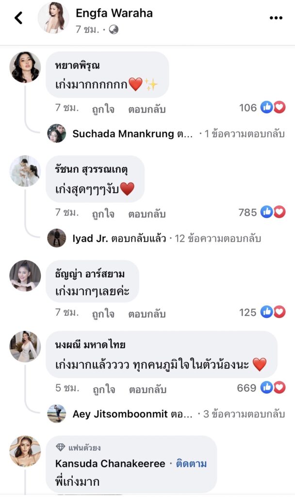 ท่ามกลางคนบันเทิง รวมไปถึงแฟนๆที่เข้ามาคอมเมนต์ส่งกำลังใจให้รัวๆ และต่างพูดเป็นเสียงเดียวกันว่า เธอเก่งและสวยงามที่สุดแล้ว