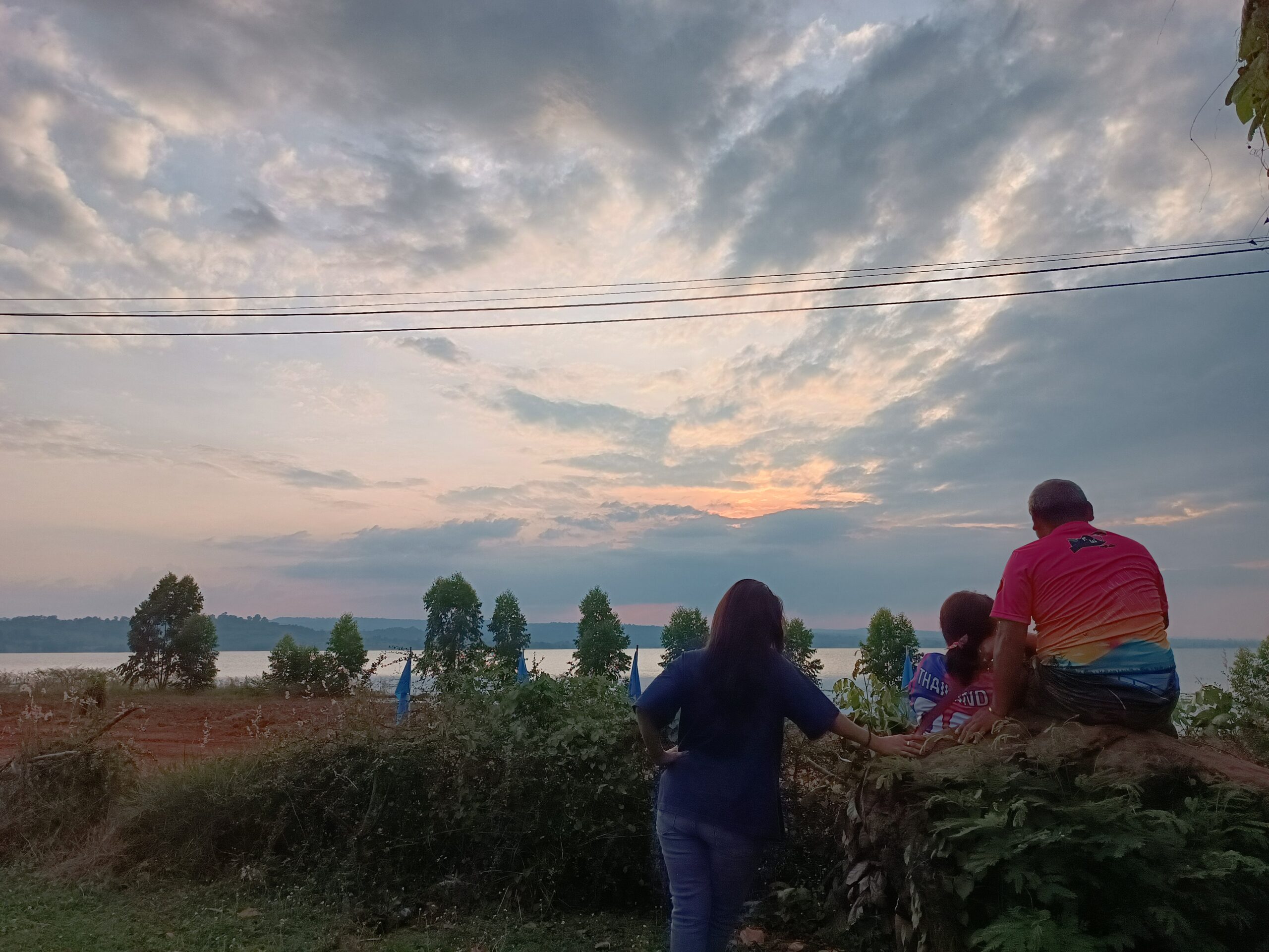 ซึ่งบริเวณนี้ จะมีลักษณะเป็นแหลมยื่นลงไปภายในเขื่อน มีฉากหลังเป็นภูเขา 3 ลูกเรียงซ้อนกันอย่างสวยงาม โดยเฉพาะในช่วงเย็นจะสามารถมองเห็นพระอาทิตย์ตก ลับเหลี่ยมหลังเขาและผืนน้ำ ยิ่งเพิ่มความงามให้กับสถานที่แห่งนี้มากขึ้นอีก ซึ่งนักท่องเที่ยวสามารถเข้าไปติดต่อสถานที่กางเต้นท์ได้กับชาวบ้านในบริเวณนั้น