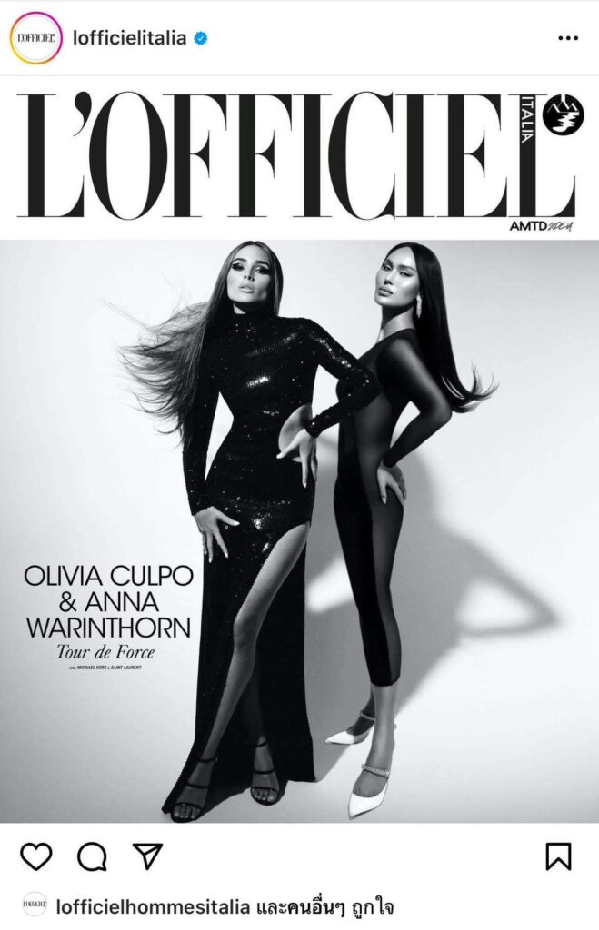Anna warinthorn ประกบ Olivia Culpo นางแบบระดับโลก ขึ้นปกนิตรสาร L’officiel ltalia
