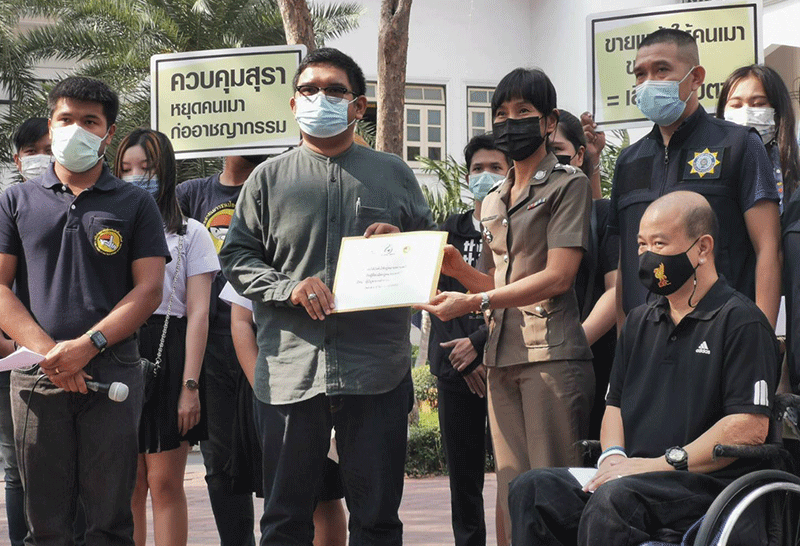 ตัวแทน เครือข่ายเยาวชน ลดปัจจัยเสี่ยงและเหยื่อเมาแล้วขับ กว่า 10 คน เข้ายื่นหนังสือถึงพล.ต.อ.สุวัฒน์ แจ้งยอดสุข ผบ.ตร. ผ่าน พ.ต.อ.หญิง วิชญ์ชยากร รอง ผบก.สท.กรณีเรียกร้องให้สำนักงานตำรวจแห่งชาติบังคับใช้กฎหมายอย่างจริงจังกับผู้ที่เมาแล้วขับ เนื่องจากบุคคลเหล่านี้ได้สร้างความเดือดร้องต่อชีวิตและทรัพย์สินของผู้อื่น