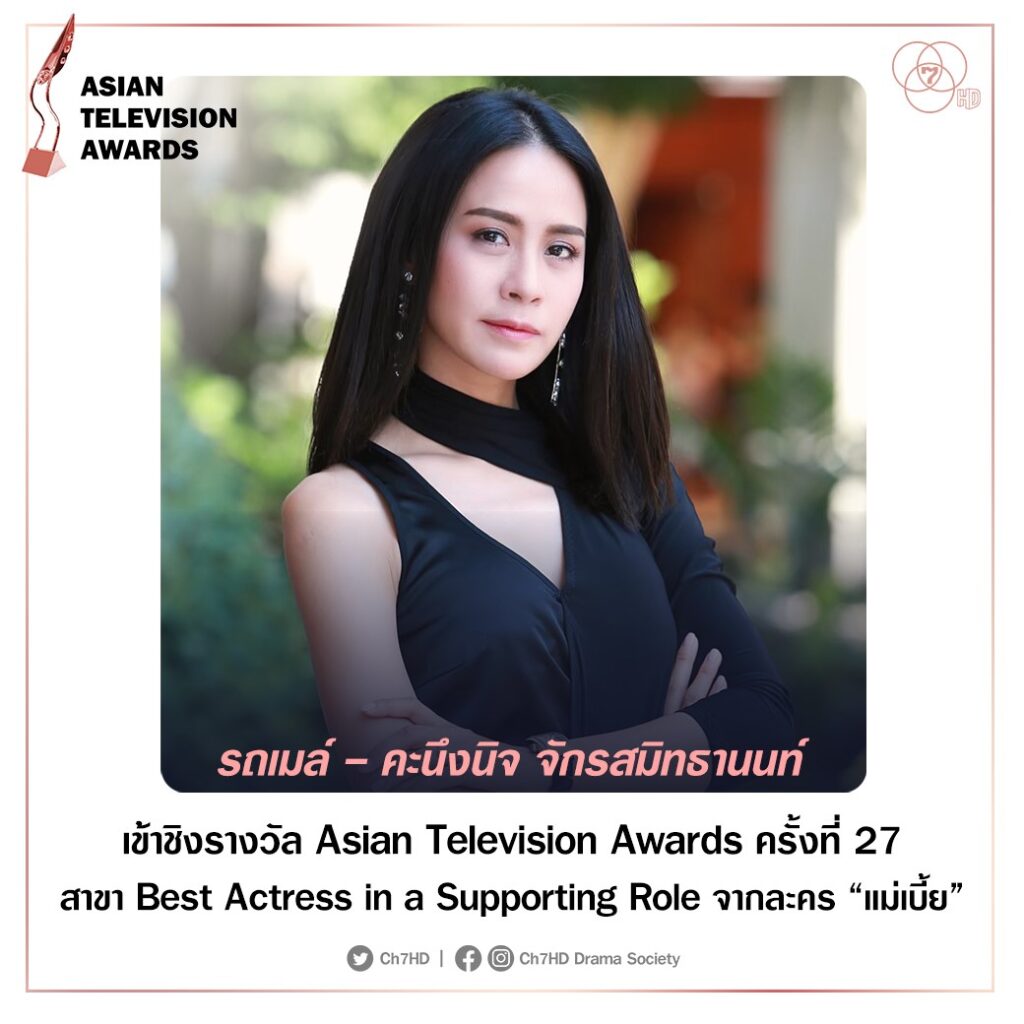 ตื่นเต้น และดีใจสุด ๆ กันเลยทีเดียว สำหรับนักแสดงคุณภาพ รถเมล์–คะนึงนิจ จักรสมิทธานนท์ ที่ล่าสุดได้รับข่าวดีว่า มีรายชื่อเข้าชิงรางวัลระดับเอเชีย Asian Television Awards (ATA) 2022 ครั้งที่ 27 สาขา Best Actress in a Supporting Role (นักแสดงสมทบยอดเยี่ยม) จากบท ไหมแก้ว ในละครเรื่อง แม่เบี้ย ทางช่อง 7HD ซึ่งภายในงานประกาศรางวัลครั้งนี้ ยังมี เอส–กันตพงศ์ บำรุงรักษ์ พระเอกหนุ่มจาก แม่เบี้ย บินตรงไปรับหน้าที่พิธีกรด้วย โดยงานประกาศผลรางวัลจะจัดขึ้นในวันพฤหัสบดีที่ 1 ธันวาคมนี้ ณ กรุงมะนิลา ประเทศฟิลิปปินส์