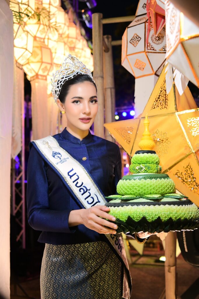 “อีฟ-ไอยวริญ์ ชื่นชอบ” สาวหน้าสวย ดีกรีนางงามเดินสายตัวแม่ผู้กวาดมงกุฎและสายสะพายมาแล้วไม่ต่ำว่า 100 เวที ครั้งนี้อีฟมาในลุคสาวเหนือ ยืนถือกระทงยิ้มหวาน ด้วยชุดประจำภาคเหนือ แถมยังโชว์ สกิลฟ้อนผางประทีป เรียกว่าเธอคนนี้ ยืนหนึ่งในเรื่องของการรำและแต่งชุดไทยจริง ๆ เพราะไม่ว่าจะเป็นชุดไทยประเภทไหนบอกเลยว่า อีฟนั้น สะกดทุกสายตาและเอาอยู่