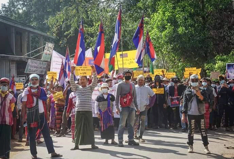 ชายแดนไทย-เมียนมา ชาวกะเหรี่ยงลุกฮือ ต่อต้านยึดอำนาจในประเทศเมียนมา