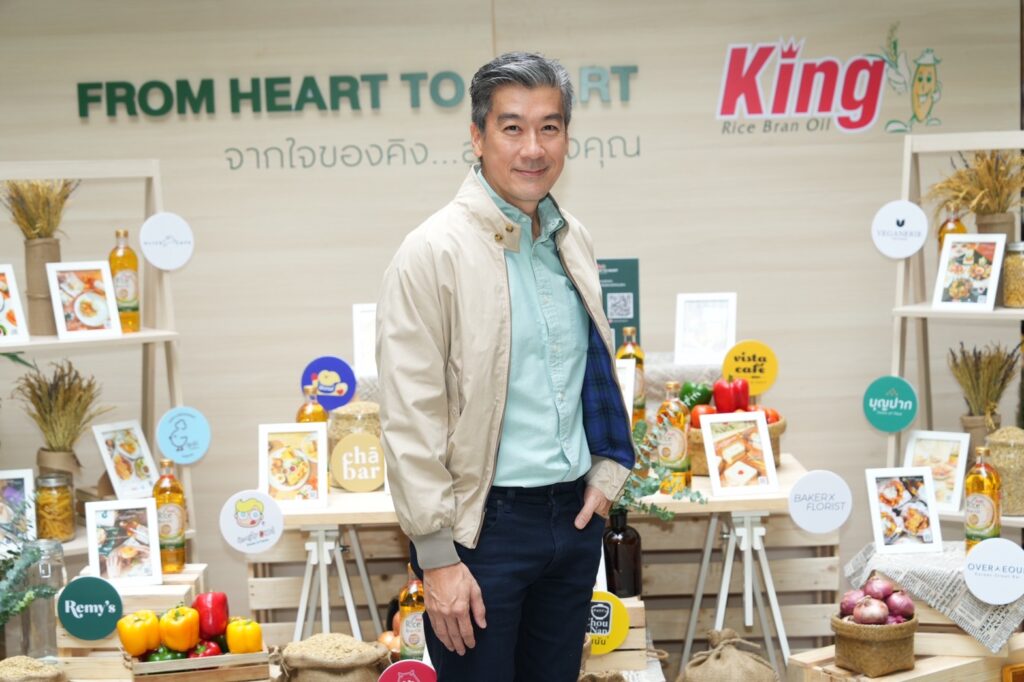 คุณประวิทย์ สันติวัฒนา ประธานเจ้าหน้าที่บริหารกลุ่มน้ำมันรำข้าวคิงผู้ผลิตและจัดจำหน่ายผลิตภัณฑ์น้ำมันรำข้าวคิง กล่าวว่า “คิงเล็งเห็นคุณค่าของข้าวไทย ตั้งใจจะส่งต่อคุณค่าดีๆ จากรำข้าวและจมูกข้าว มุ่งมั่นกลั่นน้ำมันรำข้าวด้วยมาตรฐานระดับสากลและวัตถุดิบคุณภาพสูงที่คัดสรรจากใจเพื่อส่งมอบน้ำมันที่ดีต่อหัวใจทุกดวง ในน้ำมันรำข้าวคิงมีสารโอรีซานอล (Oryzanol) เป็นสารธรรมชาติที่พบเฉพาะในน้ำมันรำข้าวเท่านั้น มีประสิทธิภาพในการต้านอนุมูลอิสระได้สูงกว่าวิตามินอีถึง 6 เท่า และยังมีคุณสมบัติช่วยลดคอเลสเตอรอลที่ไม่ดี (LDL-C) ให้กับร่างกาย นอกจากนี้น้ำมันรำข้าวคิงยังมีสารไฟโตสเตอรอล (Phytosterols) เป็นสารธรรมชาติที่พบเฉพาะในพืช เช่น ธัญพืชที่ไม่ขัดสี ถั่ว จมูกข้าว รำข้าว และน้ำมันรำข้าวช่วยลดการดูดซึมคอเลสเตอรอลในร่างกาย ได้อีกด้วย ด้วยมาตรฐานสินค้าระดับสากลและคุณประโยชน์ที่อัดแน่นของน้ำมันรำข้าวคิง ทำให้ผลิตภัณฑ์ของเราได้รับความไว้วางใจอยู่คู่ครัวไทยมายาวนานกว่า 40 ปีและยังเป็นตัวแทนในการส่งมอบความรักและความห่วงใยจากผู้ใช้ที่ส่งต่อถึงคนที่รักผ่านการปรุงอาหาร ช่วยเติมเต็มอาหารจานโปรดของทุกคน ทุกรสชาติ และทุกความชอบ ให้ได้อิ่มเอมและดีต่อใจ ไม่ว่าจะเป็นความรักของแม่สู่ลูก ลูกถึงพ่อแม่ เพื่อนถึงเพื่อน ทำให้น้ำมันรำข้าวคิงเป็นน้ำมันเพื่อทุกบ้านและทุกคนอย่างแท้จริง”
