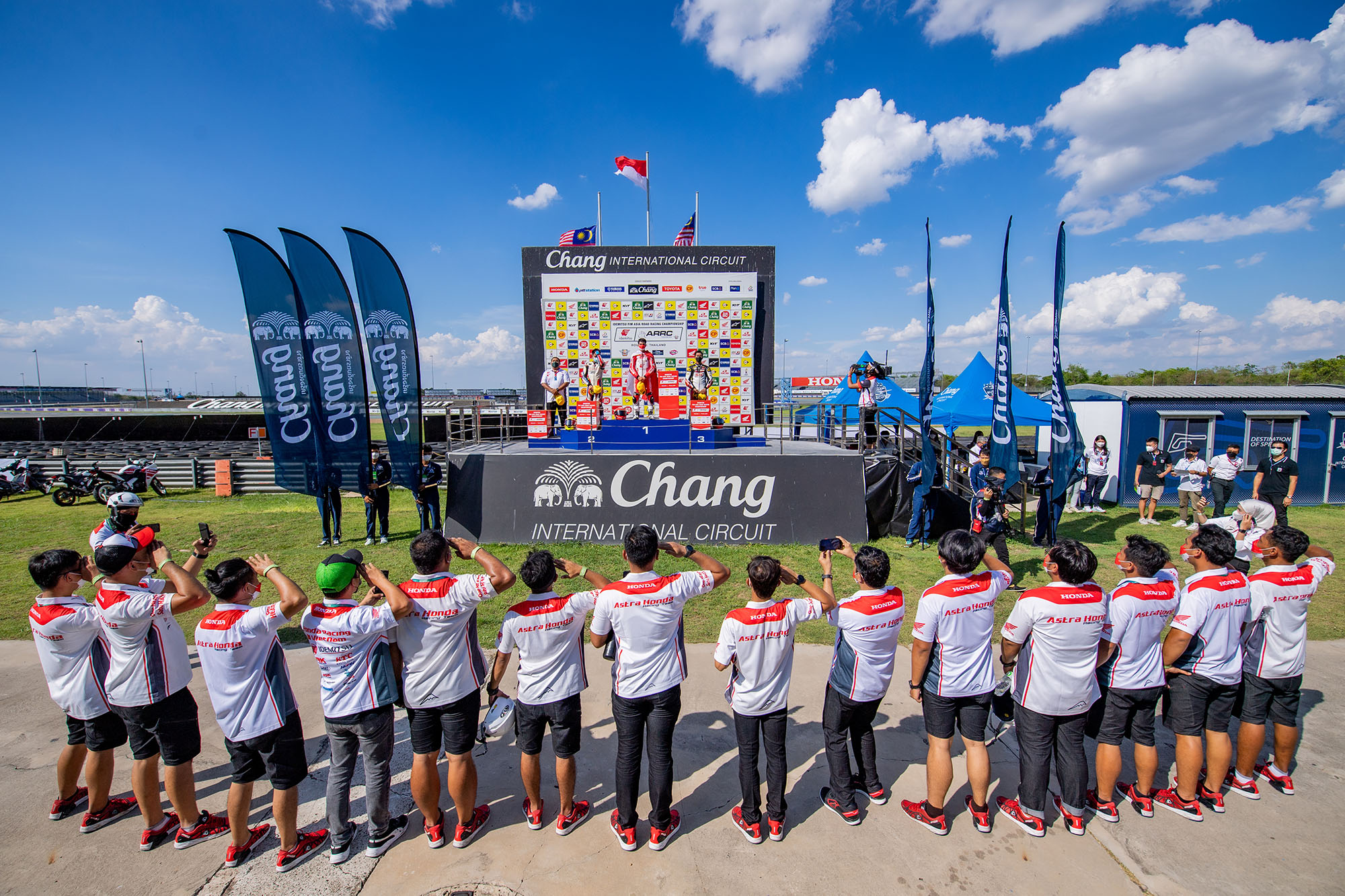 นอกจากนี้ นักบิดจอมเก๋าชาวไทยอย่าง “เอ้” วรพงษ์ มาาหวล ก็เตรียมฉลองแชมป์เอเชียในโฮมเรซกับการแข่งขันในรุ่น ทีวีเอส เอเชีย วันเมคเรซ โดยรั้งจ่าฝูงก่อนแข่ง 2 เรซสุดท้าย มีทั้งสิ้น 126 คะแนน เหนือคู่แข่งอันดับ 2 อย่าง เดคกี้ ติอาโม อัลดี้ ดาวรุ่งชาวอินโดนีเซียอยู่ 32 คะแนน ขณะที่ดาวรุ่งชาวไทยอย่าง วัชรินทร์ ทับทิมอ่อน รั้งอันดับ 3 ตามหลังถึง 47 คะแนน