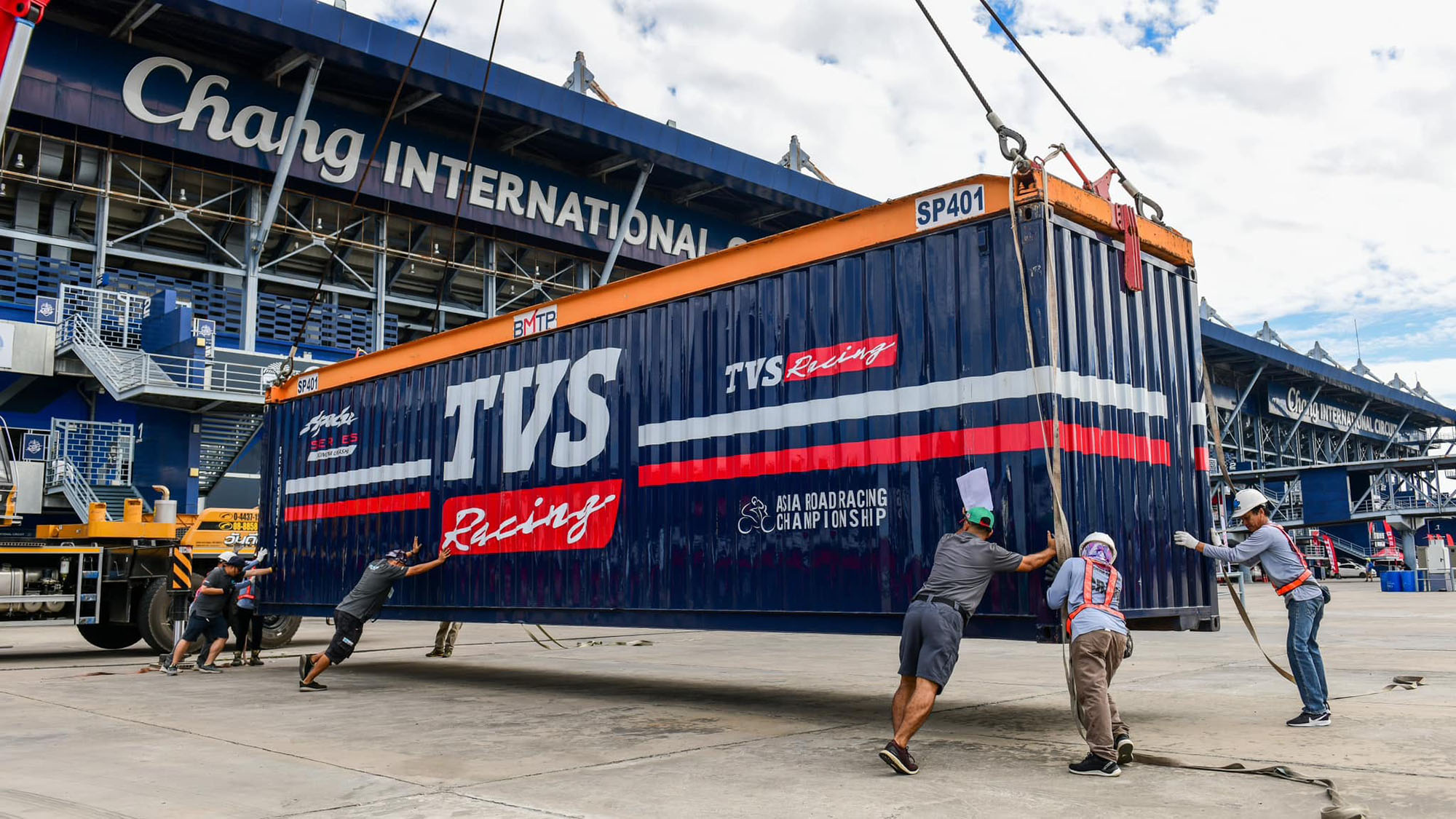 ล่าสุด ขบวนตู้คอนเทนเนอร์ขนส่งอุปกรณ์การแข่งขัน และรถแข่งได้เดินทางถึง สนามช้าง อินเตอร์เนชั่นแนล เซอร์กิต จ.บุรีรัมย์ เป็นที่เรียบร้อยแล้ว โดยมีเจ้าหน้าที่สนามต้อนรับและเตรียมความพร้อมสำหรับการแข่งขันในสุดสัปดาห์นี้