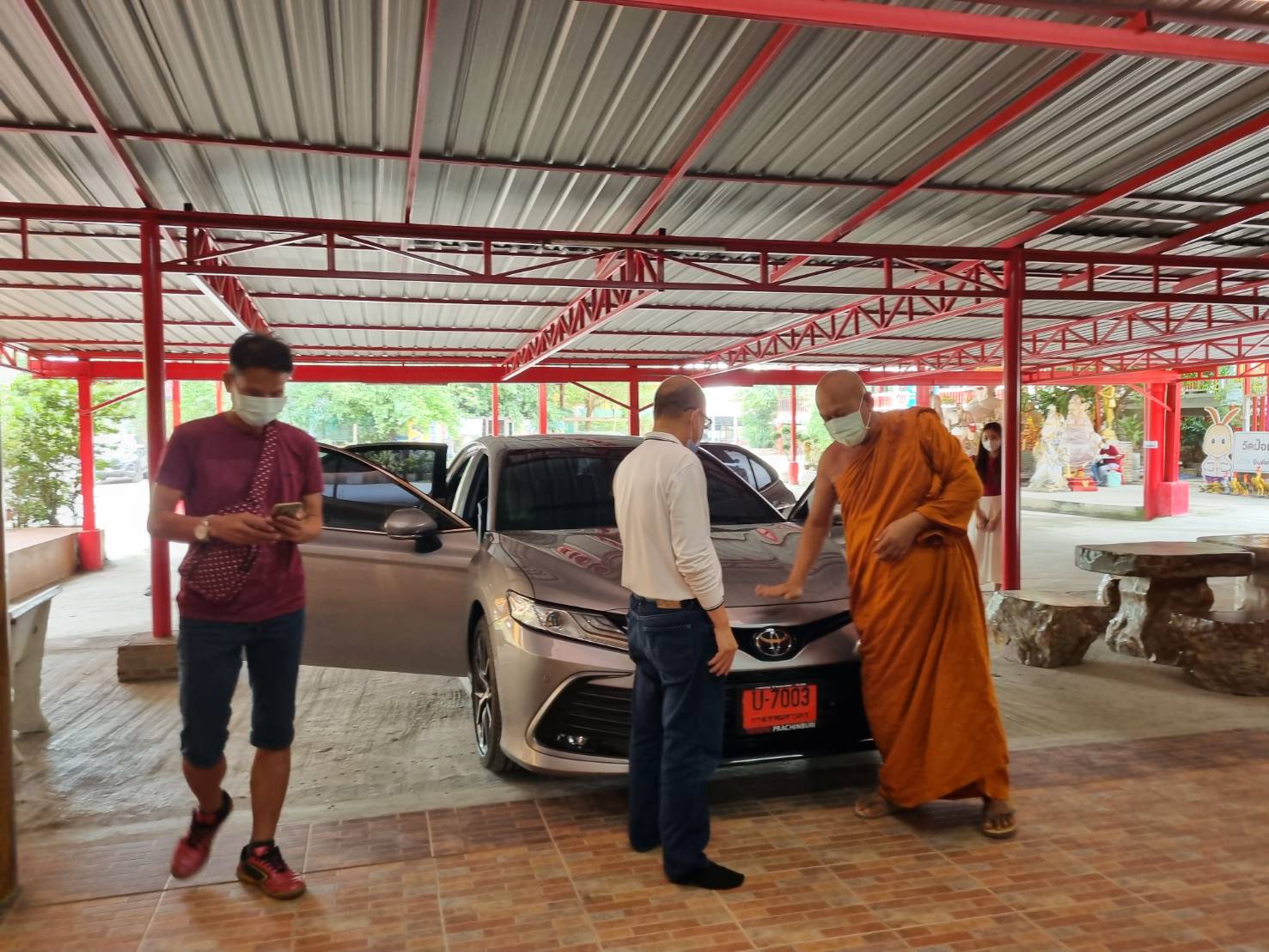 ผู้สื่อข่าวรายงาน ที่วัดป้อมรามัญ ต.สวนพริก อ.พระนครศรีอยุธยา จ.พระนครศรีอยุธยา นายอัจฉริยะ เรืองรัตนพงษ์ ประธานชมรมช่วยเหลือเหยื่ออาชญากรรม ถือฤกษ์ดี นำรถยนต์ Toyota Camry ทะเบียน ป้ายแดง บ-7003 กรุงเทพมหานคร มาให้ พระครูเกษมจันทรวิมล (พระอาจารย์แดง) เจ้าอาวาสวัดป้อมรามัญ เจ้าของฉายานิ้วมหามงคล เจิมรถ พร้อมกับประพรมน้ำมนต์ เพื่อความเป็นสิริมงคล