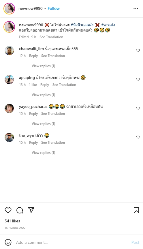 ท่ามกลางชาวเน็ตเข้ามาแสดงความคิดเห็นมากมาย ซึ่งก็มีชาวเน็ตรายหนึ่งคอมเมนต์เชิงต่อว่า พาดหัวข่าวแบบนี้ทำให้คนเข้าใจผิดกันหมด งานนี้ สาวนิวนิว ก็รีบเข้ามาตอบกลับว่า จริงค่ะ