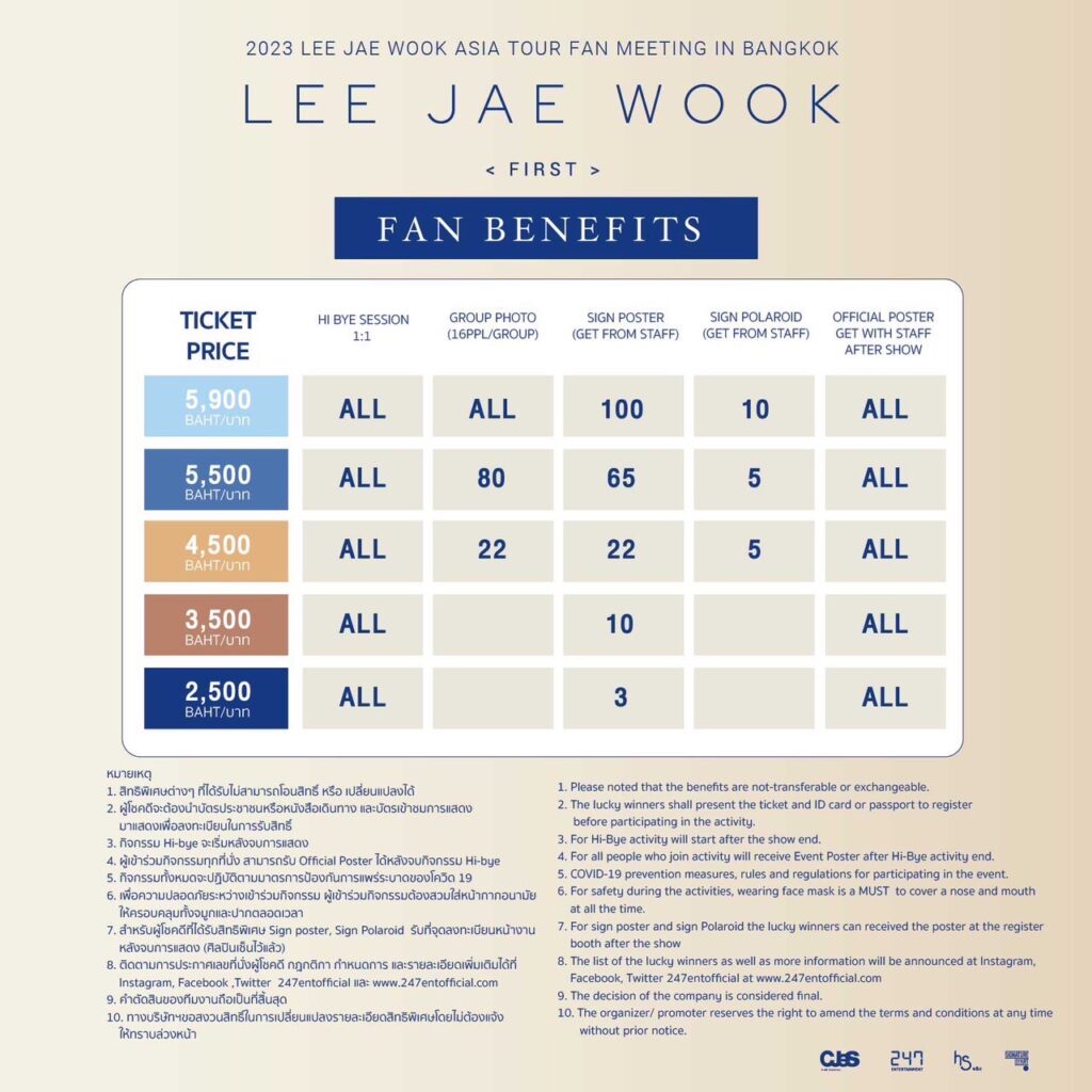 อี แจ อุค รายงานตัวครับผม! เหล่าบรรดาแฟนๆ คอซีรีส์ ALCHEMY OF SOULS เตรียมเฮ เมื่อพระเอกหนุ่มดาวรุ่ง อี แจ อุค ประกาศอย่างเป็นทางการเตรียมเสิร์ฟความสุขให้แฟนๆชาวไทยในแฟนมีตติ้งครั้งแรกโดยใช้ชื่องานว่า 2023 LEE JAE WOOK ASIA TOUR FAN MEETING <FIRST> IN BANGKOK โดยงานจะเกิดขึ้นวันเสาร์ที่ 4 กุมภาพันธ์ 2566 จัดที่ โรงละคร เคแบงก์ สยามพิฆเนศ ผู้จัดครั้งนี้คือ 247ENTERTAINMENT ซึ่งงานนี้จัดหนักจัดเต็มให้แฟนๆได้อิ่มหนำความสุข แฟนมีตติ้งครั้งนี้จะได้เห็นความหล่อ และความสามารถของอีแจอุคแบบจุใจ พร้อมมีเซอร์ไพร์สในงานที่ทุกคนต้องกรี๊ดสลบเป็นของขวัญยกกำลังสองอีกด้วย ซึ่งจะทำการเปิดจองบัตร ในวันเสาร์ที่ 10 ธันวาคม 2565 เวลา 10:00 น. ผ่านช่องทางของ ALLTICKET ไม่ว่าจะเป็นหน้าเคาท์เตอร์เซอร์วิสหรือเว็ปไซต์ www.allticket.com/โดยบัตรจะมีราคา 5,900 / 5,500 / 4,500 / 3,500 /2,500บาท สามารถติดตามรายละเอียดเพิ่มเติมได้ที่ 247 ENTERTAINMENT