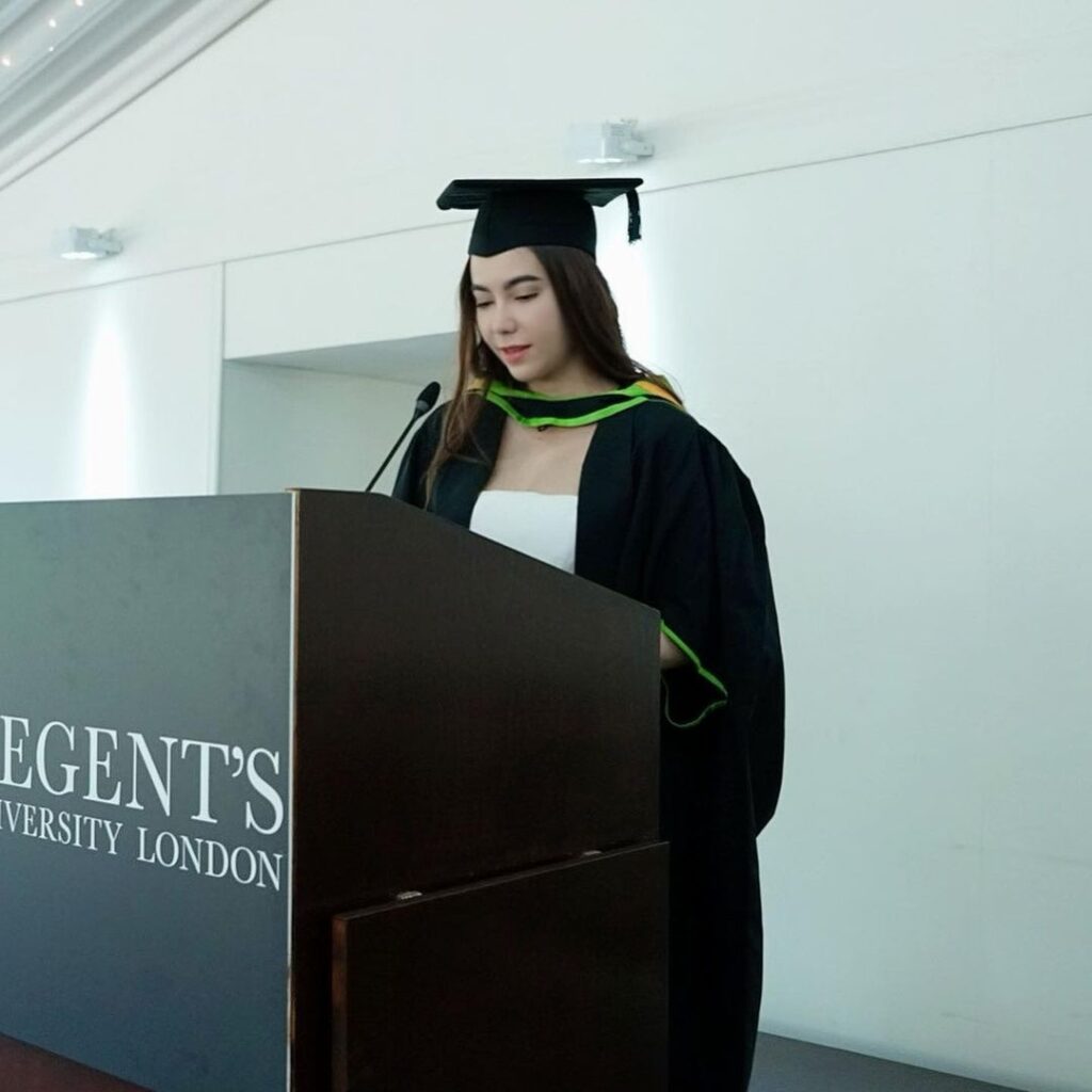 เรียกว่าประสบความสำเร็จทั้งด้านธุรกิจ และ ด้านการเรียน สำหรับนักแสดงสาว “การ์ตูน นันทฐนิชา ศิริปรีดาวัชร” ล่าสุดเจ้าตัวเรียนจบปริญญาโทเป็นเรียบร้อยแล้ว ในหลักสูตร MA Luxury Brand Management (หลักสูตรการศึกษาระดับปริญญาโทด้านการจัดการแบรนด์หรู) จาก Regent’s University London ประเทศอังกฤษ แถมยังได้เกียรตินิยมโดยใช้เวลาเรียน 1 ปีเท่านั้น