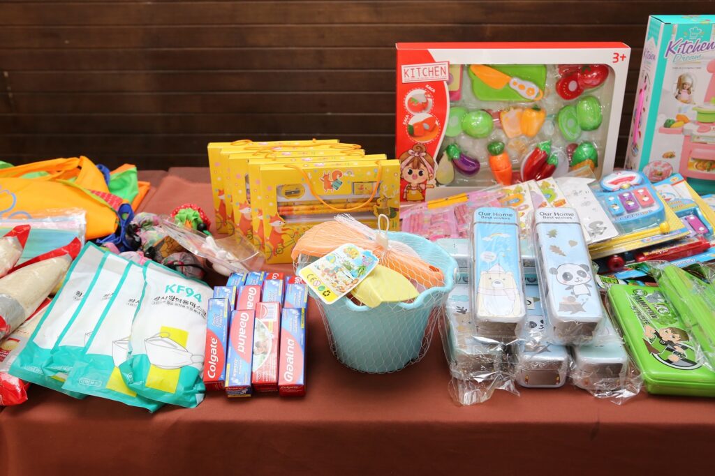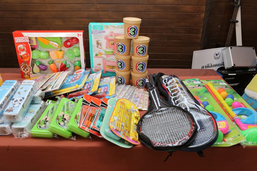 โดยของขวัญดังกล่าว เป็นของเล่น อุปกรณ์เครื่องเขียน อุปกรณ์กีฬา และของใช้ที่จำเป็นอื่น ๆ ที่พนักงานจิตอาสาเป็นผู้จัดหามาให้น้อง ๆ พร้อมกันนี้ ยังได้นำของขวัญปีใหม่ในโครงการ “No Gift, More Friendship” ที่ผู้บริหารและพนักงานได้รับจากหน่วยงานภายนอกมามอบให้น้อง ๆ ด้วย เป็นการส่งความรักและความสุขจากพี่ ๆ ช่อง 3 ถึงน้อง ๆ ที่บ้านนกขมิ้นให้ได้รับกันอย่างทั่วหน้า นอกจากนี้ บริษัท เอส แอนด์ พี ซินดิเคท จำกัด (มหาชน) ยังได้นำอาหารว่างแสนอร่อย จำนวน 100 ชุด มามอบให้น้อง ๆ อีกด้วย