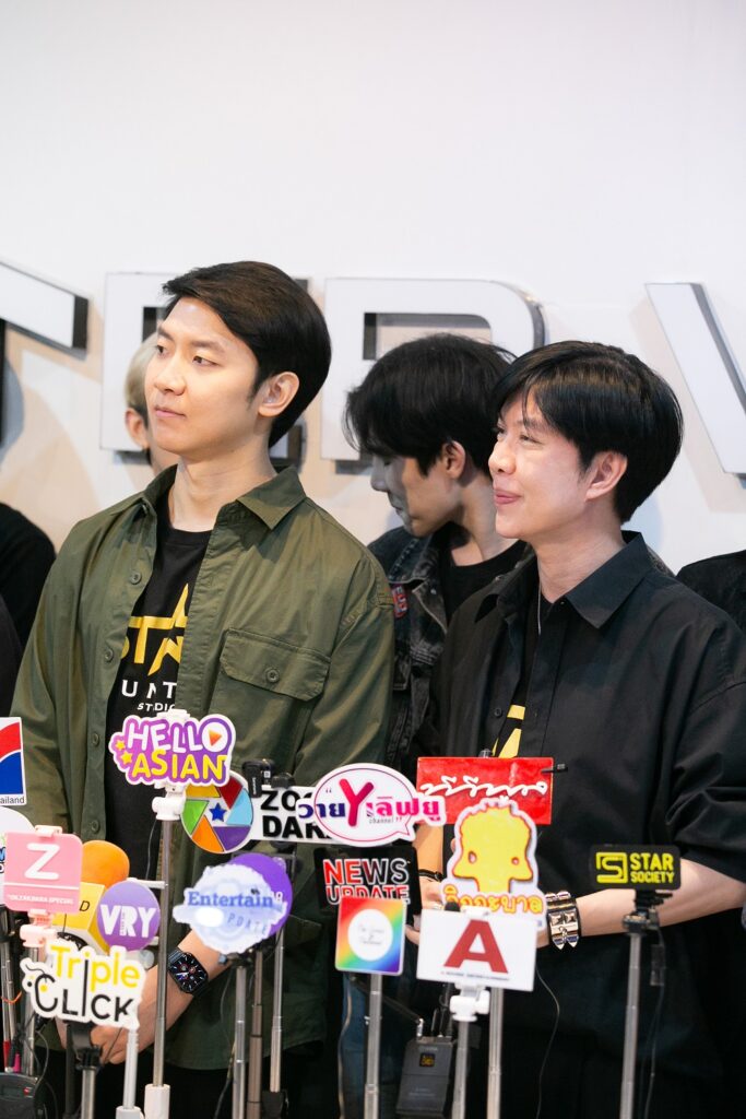 งานนี้ ยังมี 2 นักแสดงคู่จิ้น “มอส – ภาณุวัฒน์ โสประดิษฐ” และ “แบงค์ – มณฑป เหมตาล” จากซีรีส์วายสุดฮอต “มังกรกินใหญ่” #BigDragonTheSeries ให้สัมภาษณ์กับทีมผู้สื่อข่าว ว่า “ยินดีต้อนรับ เพื่อนๆ พี่ๆ น้องๆ ทุกคน ครับ จะบอกว่า เข้ามาอยู่ค่ายนี้ สนุกมากๆ ครับ ยังมีโปรเจกต์อีกมากมาย นอกจาก 5 เรื่องนี้ อยากให้ทุกคนทำเต็มที่ครับ ไม่ว่า ใครจะได้ หรือ ไม่ได้ ก็ให้กำลังใจเต็มที่ครับ”