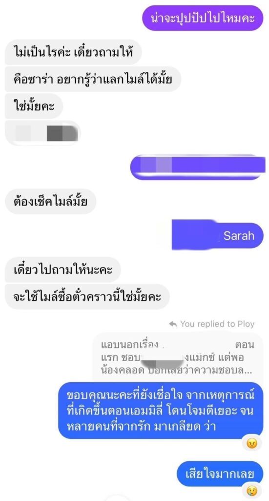 ขอขอบคุณพี่ที่ซาร่าคุยด้วยนะคะ ที่อนุญาตให้ซาร่านำ บทสนทนามาเปิดเผยเพื่อพิสูจน์ความบริสุทธิ์ของซาร่า 🙏🏻