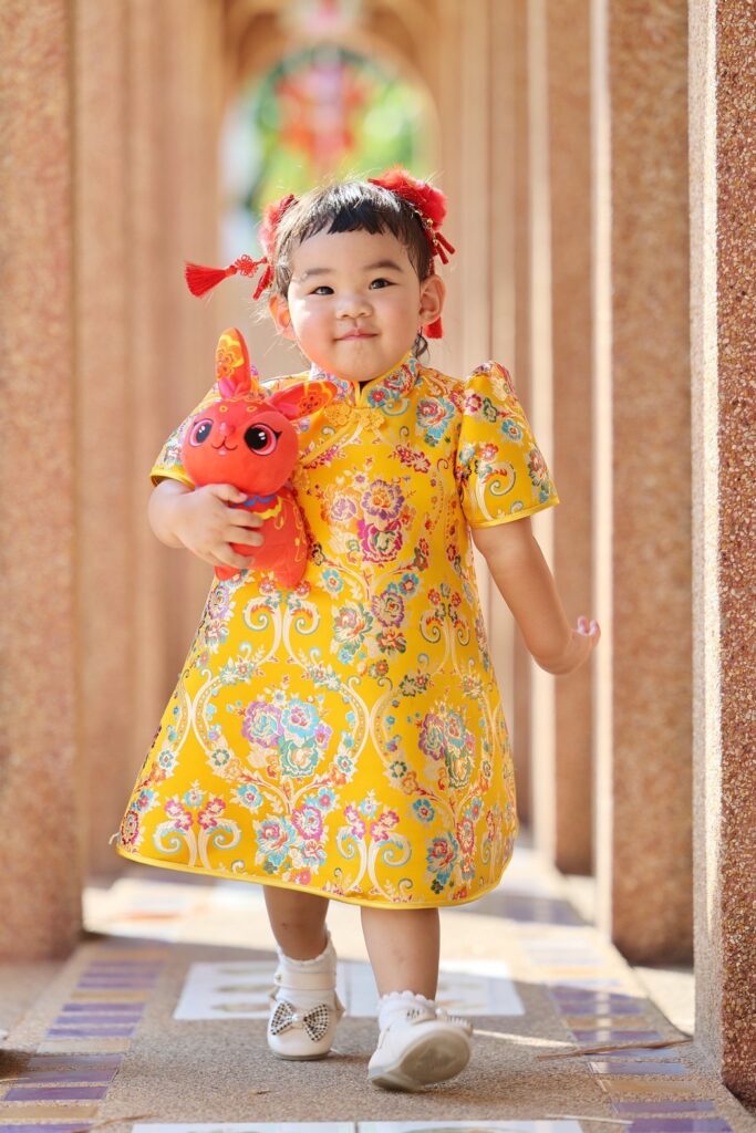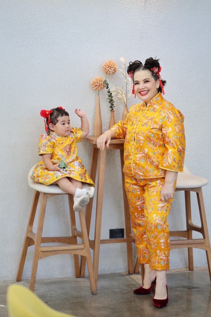 งานนี้คนสำคัญในบ้านอย่าง “น้องแอลลี่” ลูกสาวบุญธรรม พร้อบมาแน่นกว่าใคร แปลงโฉมเป็นอาหมวยน้อย มาในชุดกี่เพ้าสีเหลืองสดใส ทำผมมัดจุกเหมือน “แม่แหม่ม” ถอดแบบกันมาเป๊ะๆ พร้อมด้วยตุ๊กตากระต่ายน้อยในปีกระต่ายทอง ตรงตามโจทย์สุดๆ ที่สำคัญยังมีโลเคชั่นสวยๆแนวจีนๆ เพื่อความเป๊ะของคอนเซปตรุษจีนอีกด้วย