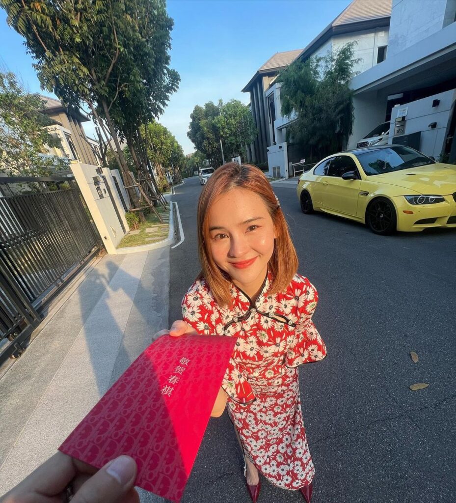 โดยสาวออมได้โพสต์ภาพผ่านอินสตราแกรมส่วนตัว พร้อมเขียนแคปชั่นกำกับไว้ว่า “อั่งเปาก็ได้ พร้อมเพย์ก็ดีค่า :)” พร้อมกับติดแท็กตรงไปหาหวานใจสุดที่รัก “แอมป์ พิธาน องค์โฆษิต”