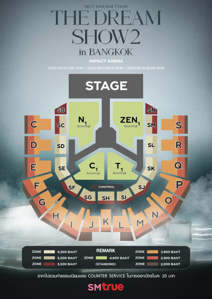 และทางเว็บไซต์ allticket.com/event/NCTDREAMTDS2BKK บัตรราคา 6,500 / 6,000 / 5,500 / 4,800 (บัตรยืน) / 3,900 / 2,900 / 2,000 บาท สอบถามข้อมูลเพิ่มเติมได้ที่ Counter Service Call Center 02-826-7788 หรือติดตามข่าวสารและรายละเอียดเพิ่มเติมของคอนเสิร์ตได้ทางบัญชีโซเชียลมีเดียต่าง ๆ ของ SM True: เฟซบุ๊ก facebook.com/smtruethailand, อินสตาแกรม instagram.com/smtruethailand และทวิตเตอร์ twitter.com/SMTrueThailand