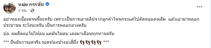 เรียกว่าต้องรีบออกมาโพสต์แจ้งเตือนแฟนๆเป็นการด่วนเลยทีเดียว สำหรับนักแสดง พิธีกรดัง “หนุ่ม กรรชัย กำเนิดพลอย” หลังถูกมือดีเอาคลิปจากลูกค้า รายการโหนกระแสไปตัดต่อ แอบอ้าง หลอกลวงประชาชน