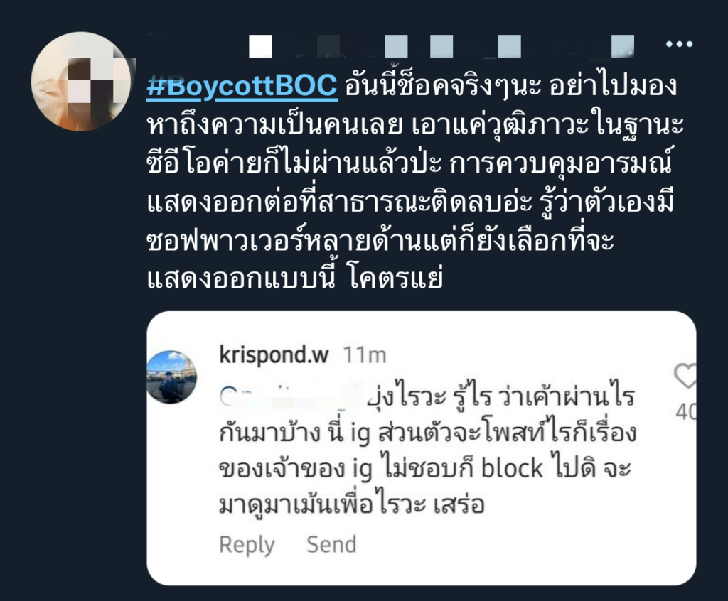 สร้างความไม่พอใจให้ชาวเน็ต แห่ติดแฮชแท็ก ##BoycottBOC จนพุ่งติดเทรนด์ทวิตเตอร์