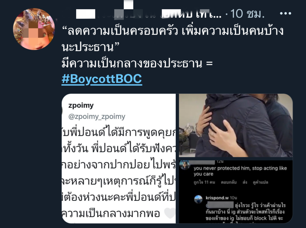 แห่ติดแฮชแท็ก #BoycottBOC  หลังผู้บริหารโพสต์คลิปให้กำลังใจบิว จักรพันธ์