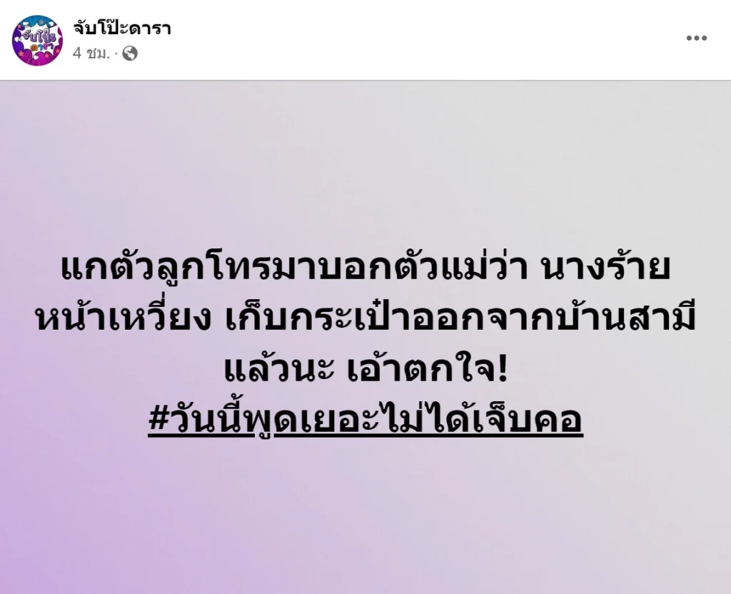 ขาเม้าท์ไม่ต้องพัก! เพจดังหย่อนคำใบ้ “นางร้ายหน้าเหวี่ยง เก็บกระเป๋าออกจากบ้านสามี”