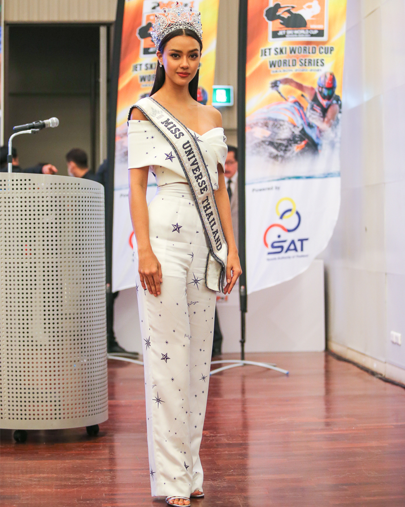 ในงานนี้ยังได้รับเกียรติจาก อแมนด้าชาร์ลีนออบดัม Miss Universe Thailand2020ให้เกียรติร่วมงานและเผยความรู้สึกปลาบปลื้มที่ได้เป็นส่วนหนึ่งของงานนี้ว่า “ด้าต้องกราบขอบพระคุณผู้ใหญ่ทุกท่านที่ให้เกียรติด้ามาร่วมงานแถลงข่าวในวันนี้ ซึ่งด้าคิดว่าเป็นงานแถลงข่าวที่ยิ่งใหญ่มากๆ และวันนี้กีฬาเจ็ตสกีไทย ก็ได้เป็นผู้จัดการแข่งขัน World Tour ด้ารู้สึกยินดีที่กีฬาเจ็ตสกีเป็นชนิดกีฬาแรกที่สร้างแบรนด์ และสร้างทัวร์นาเม้นท์สู่ตลาดเวทีกีฬาโลกได้สำเร็จ แล้วด้าก็เชื่อว่าถ้าคนไทยตั้งใจมุ่งมั่นทำอะไรแล้ว ไม่แพ้ชาติใดในโลกแน่นอนค่ะ”
