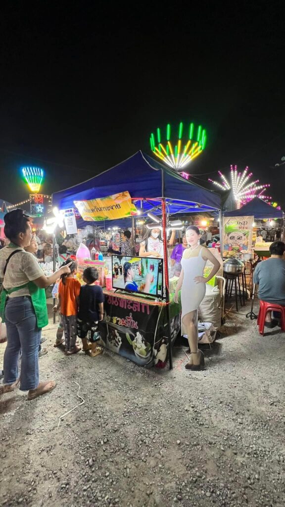 จอย : ช่วงโควิดพอดีว่างานวัดงานนี้มันอยู่ใกล้บ้าน แล้วพี่ก็ชอบขาย แล้วมันสะดวกไม่ต้องเหนื่อยเก็บของ จะมีของอยู่ที่นั้น จังหวะดีที่ว่าที่เราไปขายอยู่เจ้าของที่เขาจะเก็บไว้ให้เรา เพราะพี่ขายมา 5-6 ปีแล้ว ซึ่งงานนี้ขายดี แต่ไม่ได้ตามเป้าที่เราเคยขาย