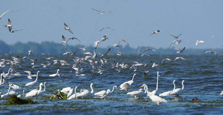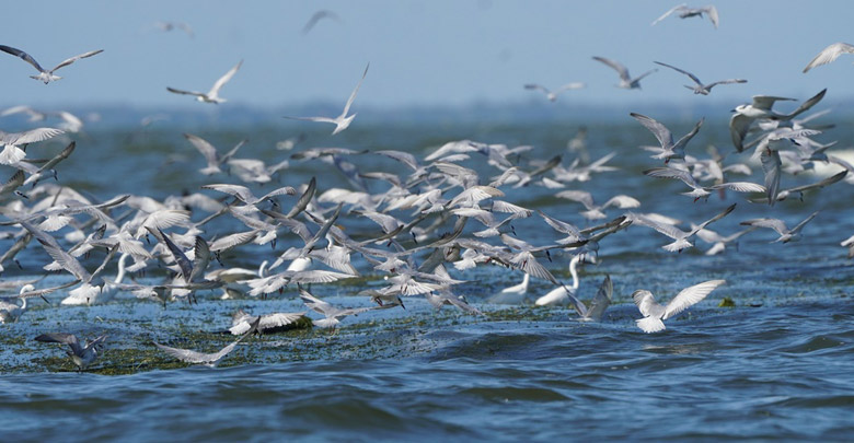 ฝูงนกนางนวลนับหมื่นหากินริมทะเลสาบสงขลา