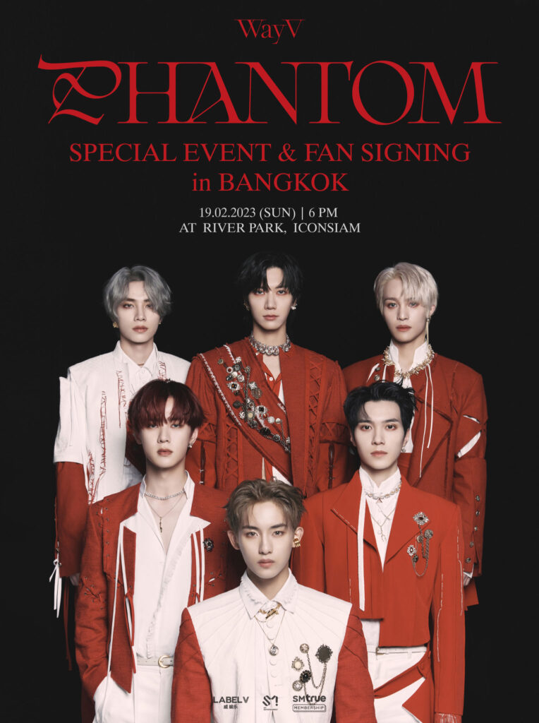 SM True (เอสเอ็ม ทรู) ส่งเซอร์ไพรส์ของขวัญชิ้นใหญ่ต้อนรับเดือนแห่งความรัก ด้วยการพา WayV (เวย์วี) สุดที่รักของ WayZenNi ชาวไทย (เวย์เจินนี : ชื่อแฟนคลับอย่างเป็นทางการ) บินลัดฟ้ามาจัดกิจกรรมพิเศษ และงานแจกลายเซ็น ‘WayV [Phantom] SPECIAL EVENT & FAN SIGNING in BANGKOK’ (เวย์วี แฟนธอม สเปเชียล อีเวนต์ แอนด์ แฟน ไซน์นิ่ง อิน แบงค็อก) ในวันอาทิตย์ที่ 19 กุมภาพันธ์ 2566 เวลา 18.00 น. เป็นต้นไป ณ ริเวอร์ พาร์ค ชั้น G ไอคอนสยาม