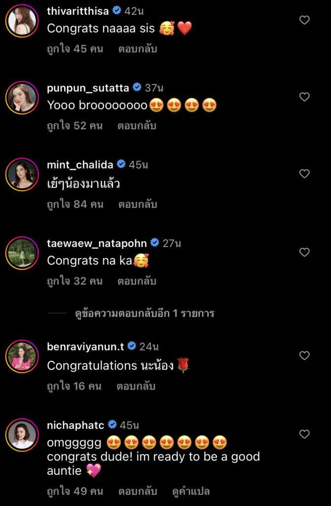 “Surprise!! Incredibly excited to announce that we are expecting our little one in 2023..” ซึ่งแปลว่า“เซอร์ไพรส์!! ตื่นเต้นมากที่เราจะประกาศว่ากำลังจะมีเจ้าตัวน้อยของเราในปี 2566″