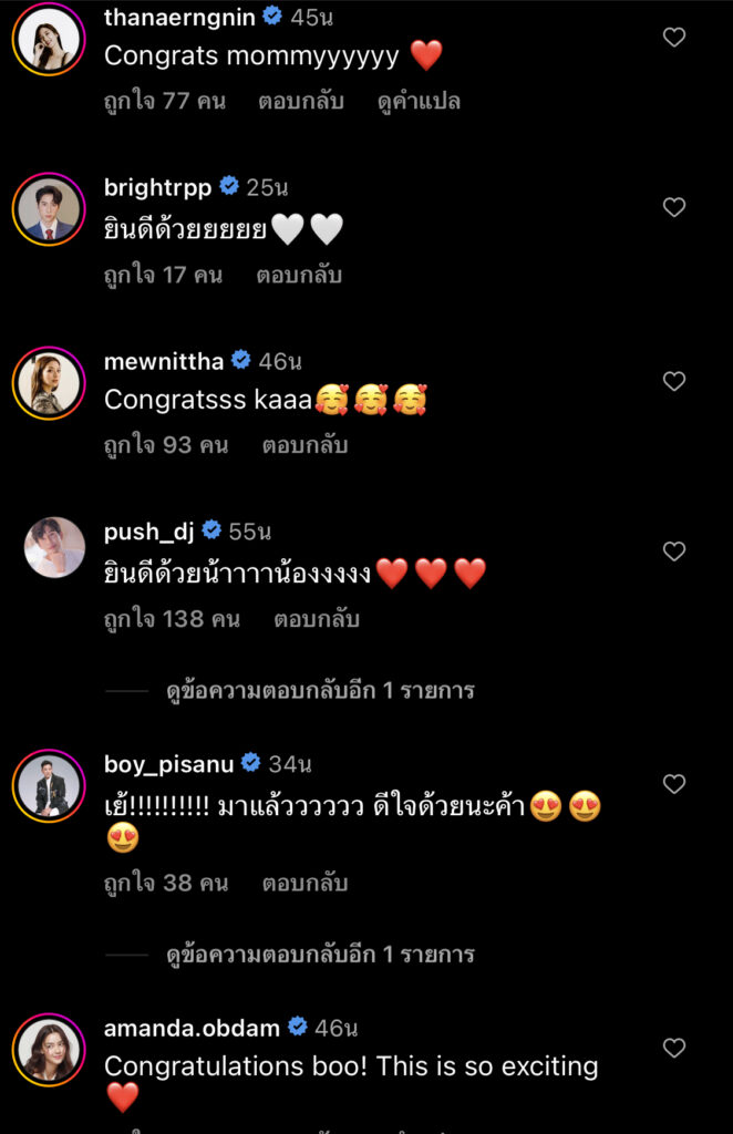 ล่าสุดก็ถือว่าสิ้นสุดการรอคอย และกำลังขึ้นแท่นเป็นว่าที่คุณแม่ป้ายแดงแล้ว เมื่อเจ้าตัวโพสต์อินสตาแกรมประกาศข่าวดี กำลังมีเบบี๋แล้ว