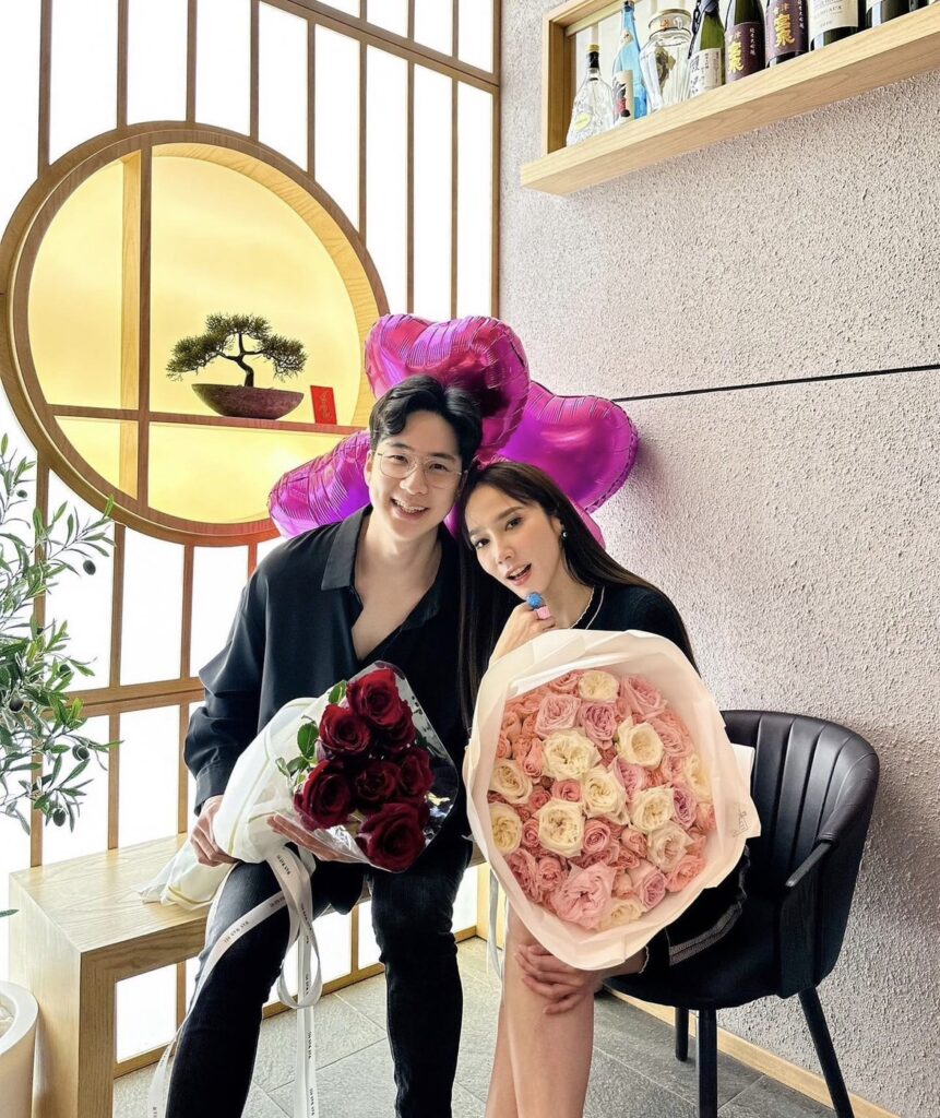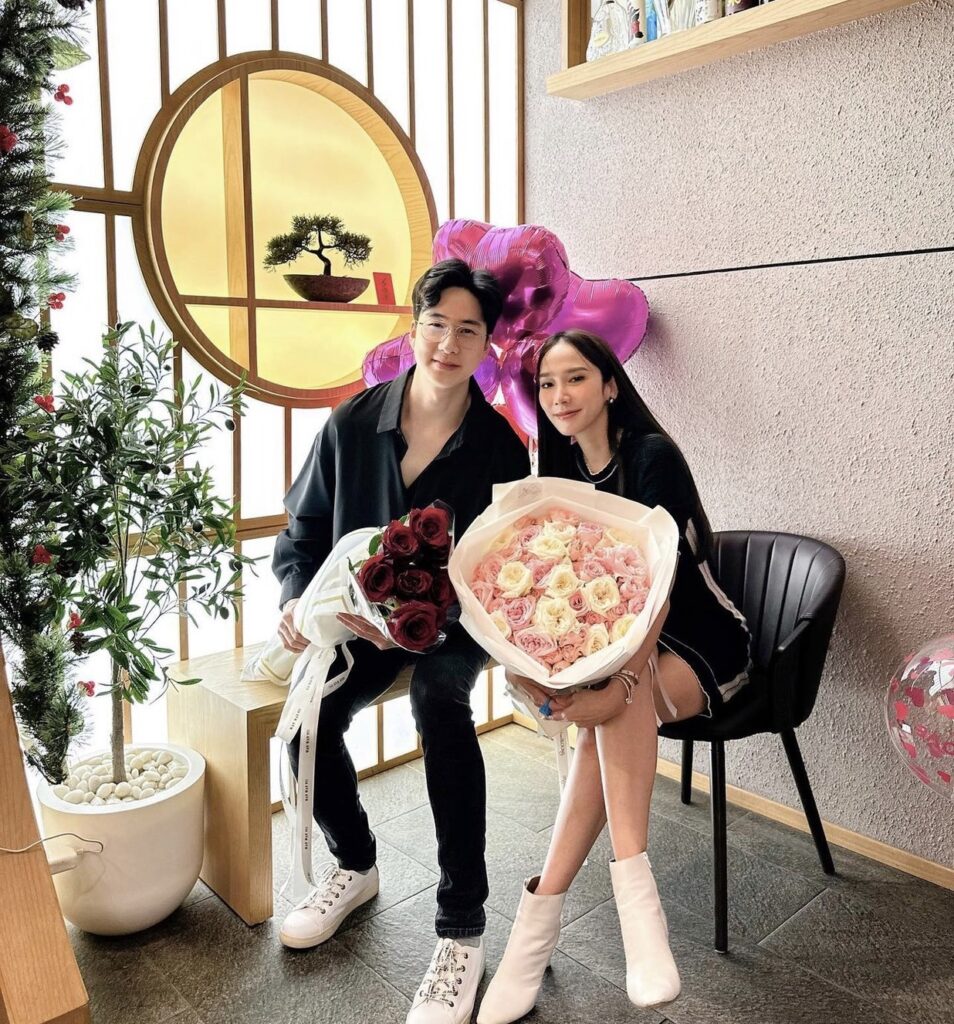 ซึ่งทางด้านฝ่ายชายได้โพสต์ภาพคู่ถือดอกไม้ช่อใหญ่อลังกาลในเทศกาลวันวาเลนไทน์ ทำให้ชาวเน็ตลุ้นหนักมากว่าสองคนนี้มีอะไรมากเกินคำว่าเพื่อนไหม ยังไงก็ต้องรอติดตามกันต่อไปนะคะ