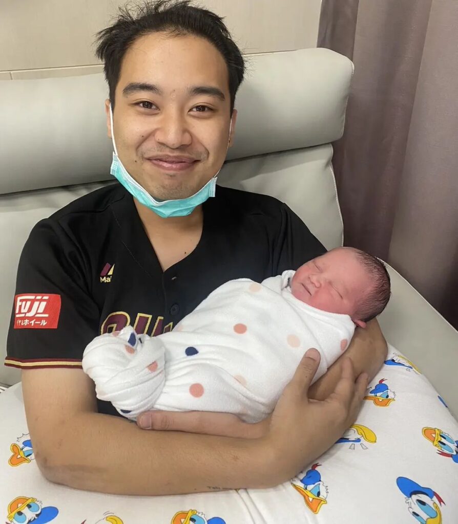 นอกจากนี้ยังโพสต์ภาพของ โหงวเฮ้ง ที่กำลังอุ้มลูกชายตัวน้อย พร้อมลงแคปชั่นว่า “หนูชื่อเล่นชื่อเจเดนนะครับ.หนูหล่อกว่าปู่เท่งนิดหน่อยเอง ออกมาก็ขี้โม้เลย ขอไปทานนมก่อนนะคะอิอิ”