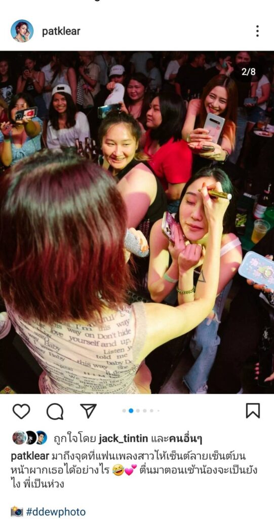 หรือนี่จะเป็นเทรนด์ใหม่ ของการแจกลายเซ็น วันก่อนโซเชียลของนักร้องสาวพลังบวก “แพท วงเคลียร์” ได้โพสต์ข้อความว่า…มาถึงจุดที่แฟนเพลงสาวให้เซ็นลายเซ็นบนหน้าผากเธอได้อย่างไร ตื่นมาตอนเช้าน้องจะเป็นยังไง พี่เป็นห่วง พร้อมลงรูปภาพแฟนคลับสาวสวยท่านนึงที่ยื่นหน้าให้ให้เธอเซ็นลายเซ็นลงที่กลางหน้าผากอย่างปราบปลื้ม งานนี้ถูกใจชาวโซเชียลต่างเข้ามาส่งหัวใจกันรัวๆ วิธีนี้แฟนคลับท่านอื่นๆลองเก็บไว้ใช้ไปเวลาดูคอนเสิร์ตศิลปินคนโปรดได้นะ