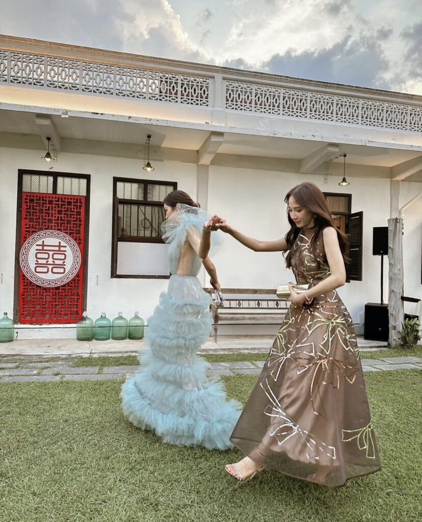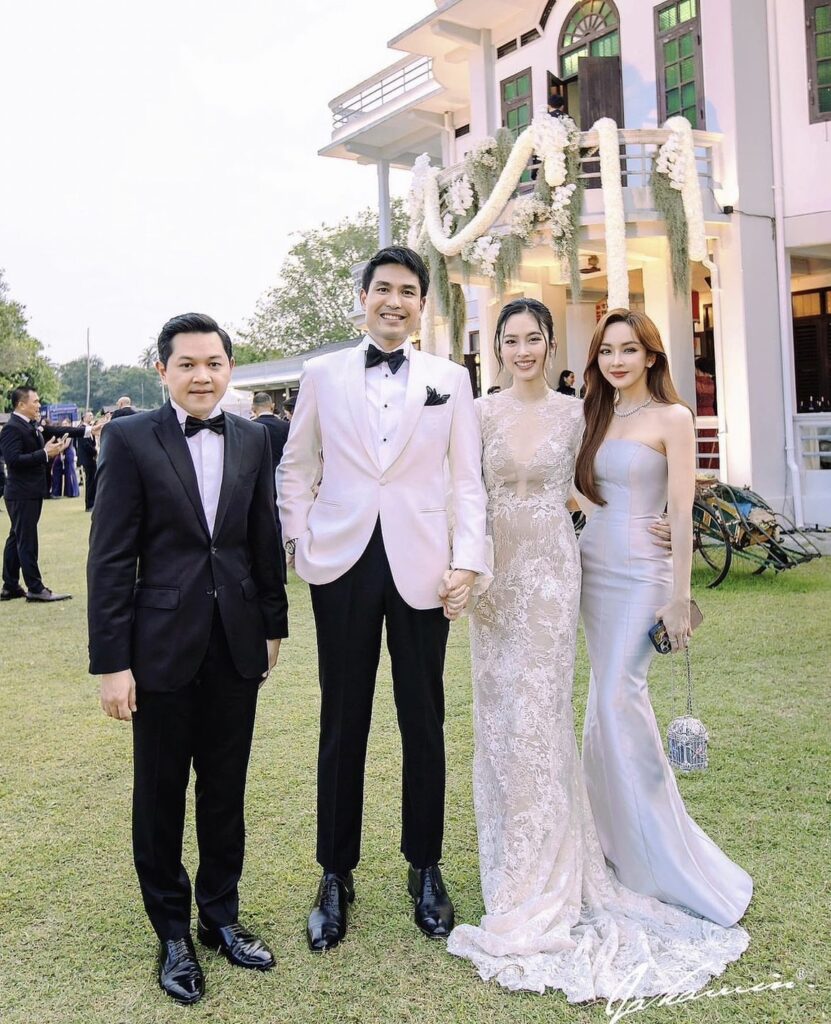 แต่ที่หลายคนฮือฮาและจับตามอง คงหนีไม่พ้น 3 สาวซุปตาร์ที่บอกเลยว่าความสวย ออร่ากินกันไม่ลง ไม่ว่าจะเป็น “อั้ม พัชราภา” ที่มาใน สวมชุดเดรสกระโปรงยาวสีน้ำตาลสุดเก๋ โดยที่เธอเลือกเอามาสวมใส่ในงานนี้โดยเฉพาะ พร้อมโพสต์ภาพร่วมเฟรมคู่บ่าวสาว พร้อมกับ “เมย์ พิชญ์นาฎ และ เป้ย ปานวาด” พร้อมระบุแคปชั่นว่า “ยินดีด้วยค่ะ สวยที่สุดเลย”