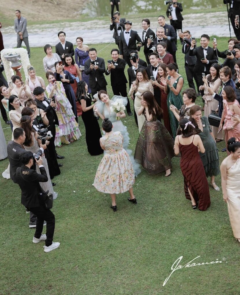 ทั้งนี้โมเมนต์สำคัญต่างรอคอยและถือว่าเป็นไฮไลท์ของงานก็ว่าได้ นั่นก็คือช่วงโยนช่อดอกไม้จากเจ้าสาว ที่งานนี้ทั้ง 3สาว “อั้ม – เมย์ – เป้ย” ก็ไม่พลาดไปร่วมลุ้นด้วย ท่ามกลางเสียงเชียร์จากแขกในงาน