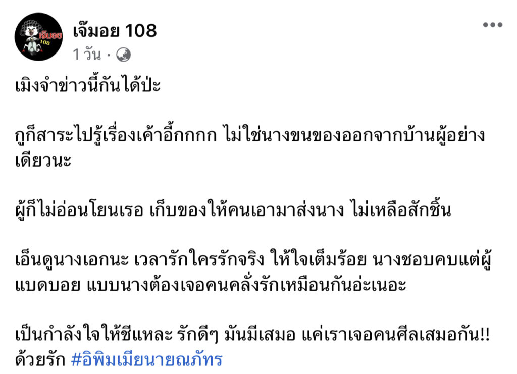 ทำเอาเจ๊เทยทำงานหนักยิ่งกว่าเซเว่นเมืองไทยอีกแล้วเด้อค่ะ เมื่อเพจดังอย่างเจ๊มอย108 ได้ออกมาไบ้คำปริศนา คือไบ้เก่งไปไหนนนนจ๊ะ โดยออกมาโพสต์ภาพที่เป็นข่าวว่า”ลือหึ่ง นางเอกหน้าเหวี่ยง ย้ายของของเจ้าบ้านแฟนหนุ่มพร้อมยังเขียนแคปชั่นเพิ่มเติมว่า “เมิงจำข่าวนี้กันได้ป่ะ กูก็สาระไปรู้เรื่องเค้าอี้กกกก ไม่ใช่นางขนของออกจากบ้านผู้อย่างเดียวนะ ผู้ก็ไม่อ่อนโยนเรอ เก็บของให้คนเอามาส่งนาง ไม่เหลือสักชิ้น