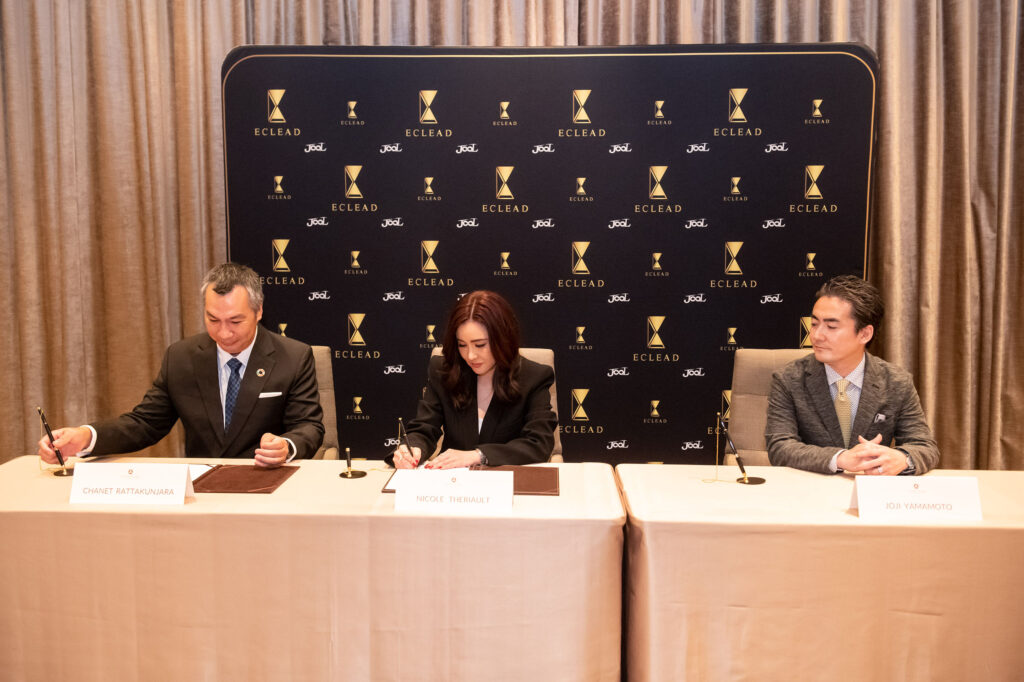 บริษัท จูล อินฟินิท (ไทยแลนด์) จำกัด ผู้ผลิตและจำหน่ายผลิตภัณฑ์ ECLEAD (เอ-คลีด) สกินแคร์พรีเมี่ยมจากน้ำแร่เมืองคาชิฮาร่า จังหวัดนาระ ประเทศญี่ปุ่น ซึ่งเป็นน้ำแร่ออนเซนจากธรรมชาติ พร้อมส่งผลิตภัณฑ์ระดับพรีเมี่ยมถึงมือคนไทย เปิดตัวด้วย “ECLEAD Premium Series” เตรียมวางจำหน่ายในประเทศไทยในช่วงเดือนเมษายน โอกาสนี้ คุณชเนศ รัตตะกุญชร ประธานบริษัท จูล อินฟินิท (ไทยแลนด์) จำกัด ร่วมกับ มิสเตอร์ โจจิ ยามาโมโตะ ผู้บริหารจากบริษัทแม่ของ บริษัท จูล อินฟินิท (ไทยแลนด์) จำกัด จัดงานลงนามเซ็นสัญญาแต่งตั้ง “นิโคล เทริโอ” เป็นแบรนด์พรีเซ็นเตอร์ ด้วยภาพลักษณ์ผู้หญิงทำงานและดูแลตัวเองให้มีสุขภาพผิวดูดีอยู่เสมอ รักสุขภาพ รวมถึงมีไลฟ์สไตล์ชอบการท่องเที่ยวและแช่น้ำแร่ออนเซนของประเทศญี่ปุ่น สอดคล้องกับผลิตภัณฑ์ของแบรนด์ โดยพิธีลงนามจัดขึ้น ณ ห้อง Drawing 1 โรงแรม ดิ โอกุระ เพรสทีจ กรุงเทพฯ
