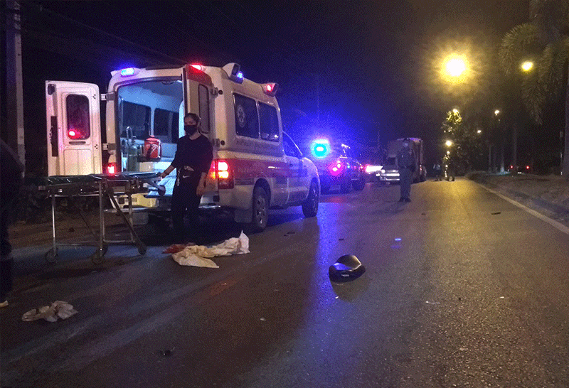 กระบะขนส่งสินค้าพุ่ง ชน จักรยานยนต์ย้อนศร ลากไปไกลเกือบ10 เมตร เสียชีวิต 1 ราย บาดเจ็บ 1 ราย