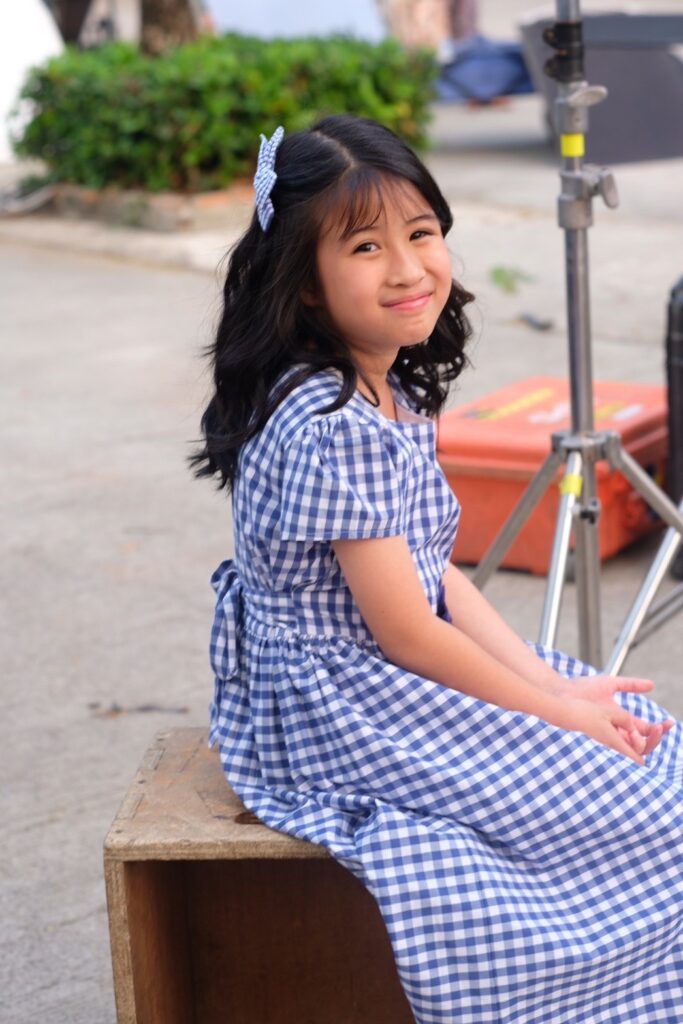 เมย์ : “วันนี้ก็ลุ้นเพราะว่ามีเด็กนี่แหละค่ะ ก็จะมีเรื่องของบล็อกกิ้งว่าเดินหรือการมองกล้อง เขาก็จะเผลอมองตรงอื่น เราก็อยากให้เขาโฟกัสที่ตัวแสดง ก็เหมือนเด็กๆ ทั่วไปเวลาเข้าฉาก เมย์ก็จะคอยช่วยดู ซึ่งถ้าพูดจริงๆ เขาก็ทำได้อยู่นะ ไม่ถึงกับไม่ได้เลย อาจจะเพราะยังไม่มีบทพูดด้วยมั้ง ถ้ามีบทพูดก็ว่ากันอีกที ถือว่ามาลองชิมลางก่อน”