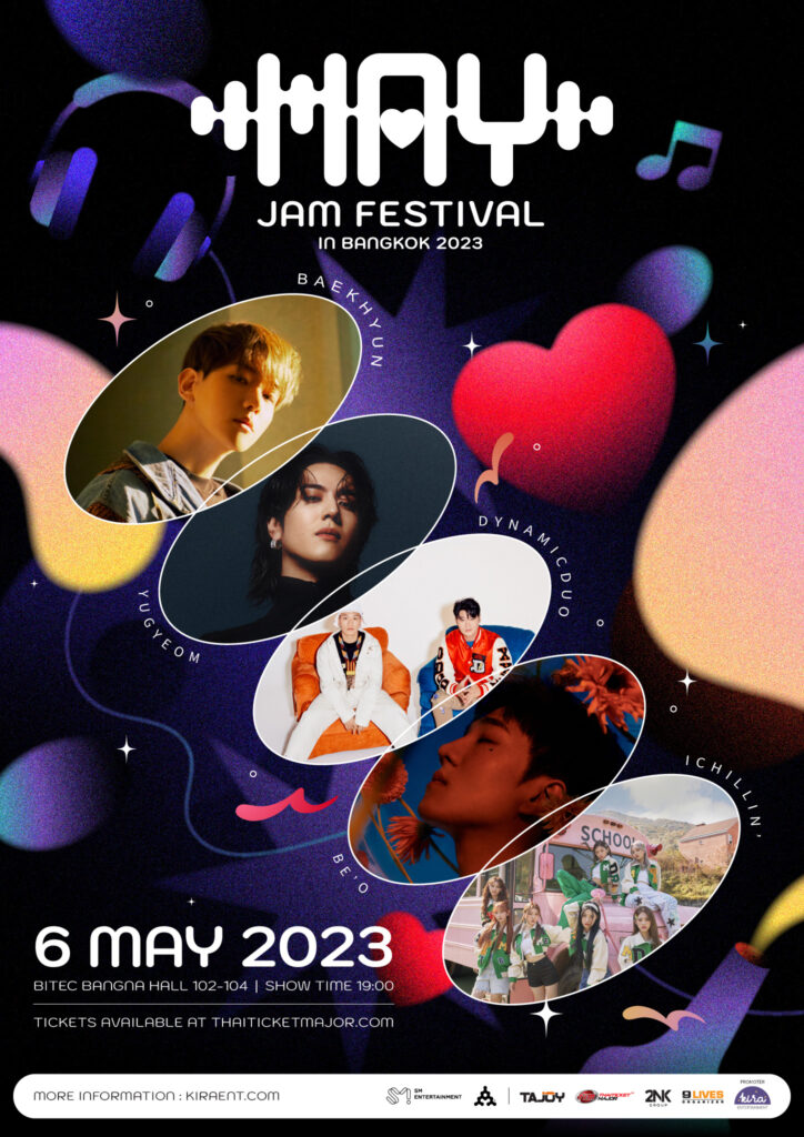 Kira Entertainment ประเดิมงาน K-POP ในไทยอย่างยิ่งใหญ่ ดึง BAEKHYUN, YUGYEOM , DYNAMICDUO , BE’O และ ICHILLIN’ ขึ้นโชว์ในงาน “M.A.Y. JAM Festival in Bangkok 2023” เสาร์ที่ 6 พฤษภาคม 2566 ณ ไบเทค บางนา
