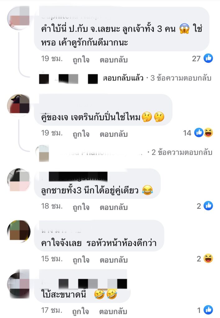 งานนี้ชาวเน็ตต่างพากันเดาไปต่างๆนาๆ แต่หลายเสียงก็ชี้เป้าไปที่คู่สามีภรรยาลูก 3 อย่าง “เจ เจตริน” และ “ปิ่น เก็จมณี”