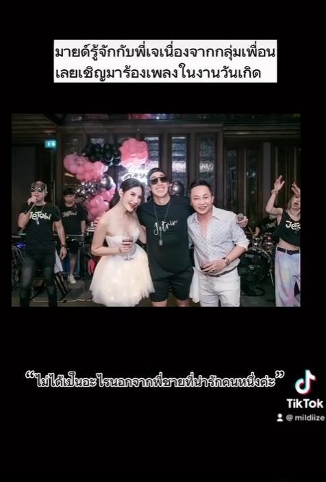 มายด์ระวังมากๆ แต่เหมือนในติ๊กต๊อก ทั้งโพส ทั้งคอมเม้นท์ จะไปกันใหญ่มากกว่าเดิม เลยคิดว่าควรชี้แจงในส่วนของตัวเอง ว่ามายด์มีสามี มีลูกที่น่ารักมากๆ รู้จักกับพี่เจไม่ได้เป็นอะไร