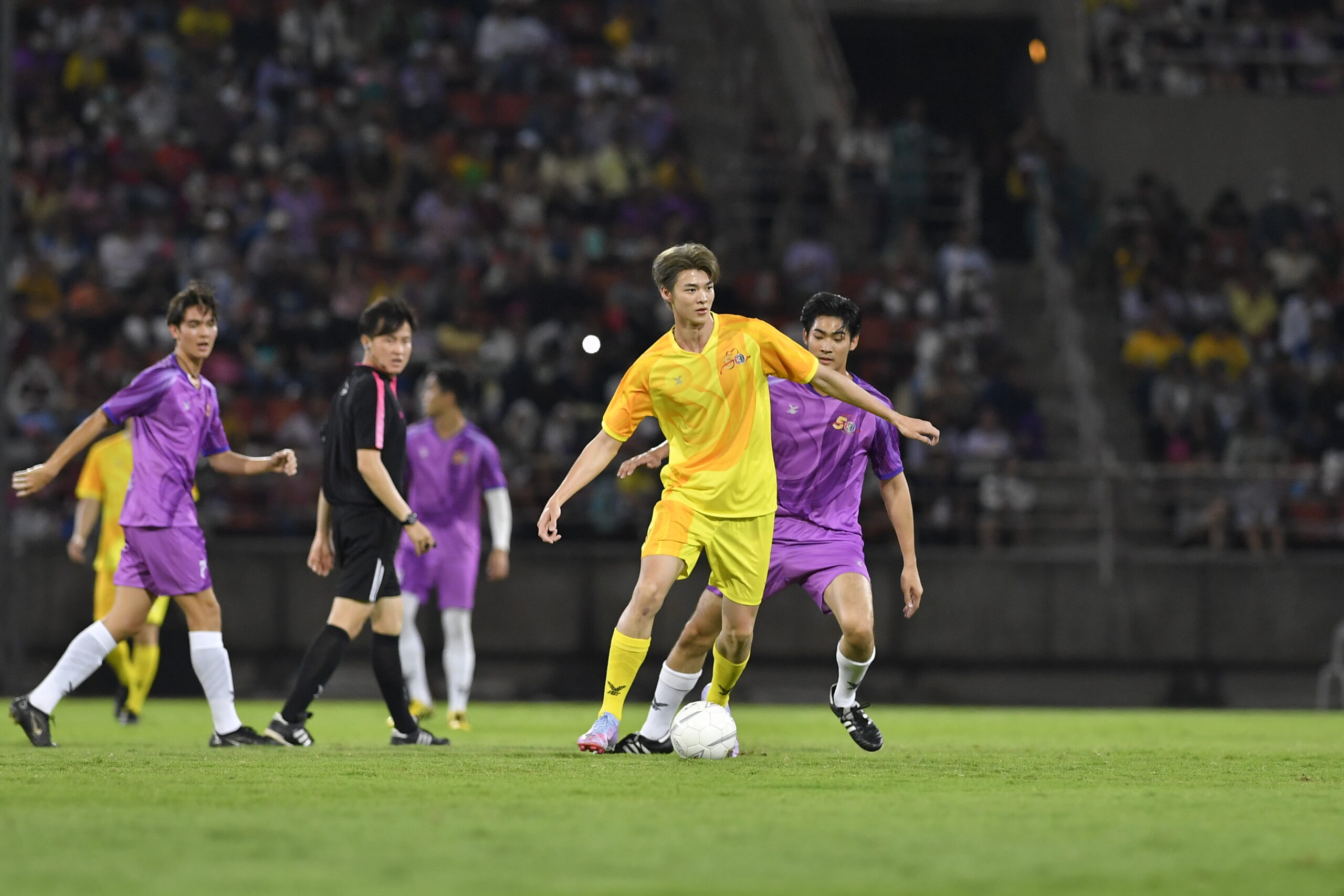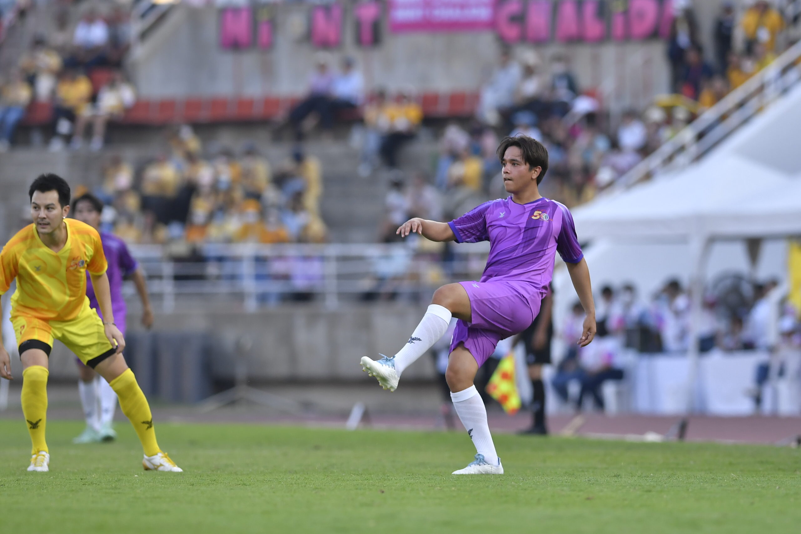 ศึกฟาดแข้งฟุตบอลซุปตาร์ ช่อง 3 สนั่น! ลั่นสนาม สีม่วง ทำประตูชนะ สีเหลือง 12ต่อ8ขาดลอย